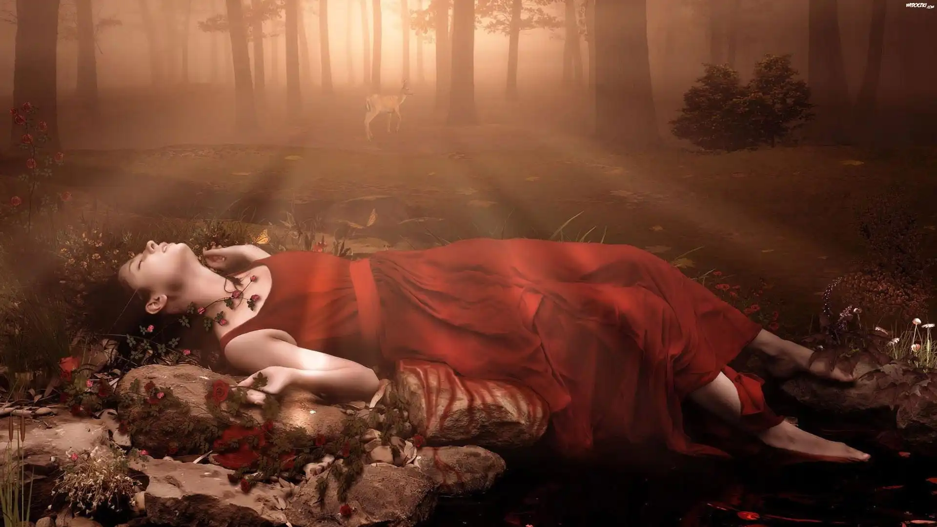Las, Dziewczyna, Mgła, Jeleń