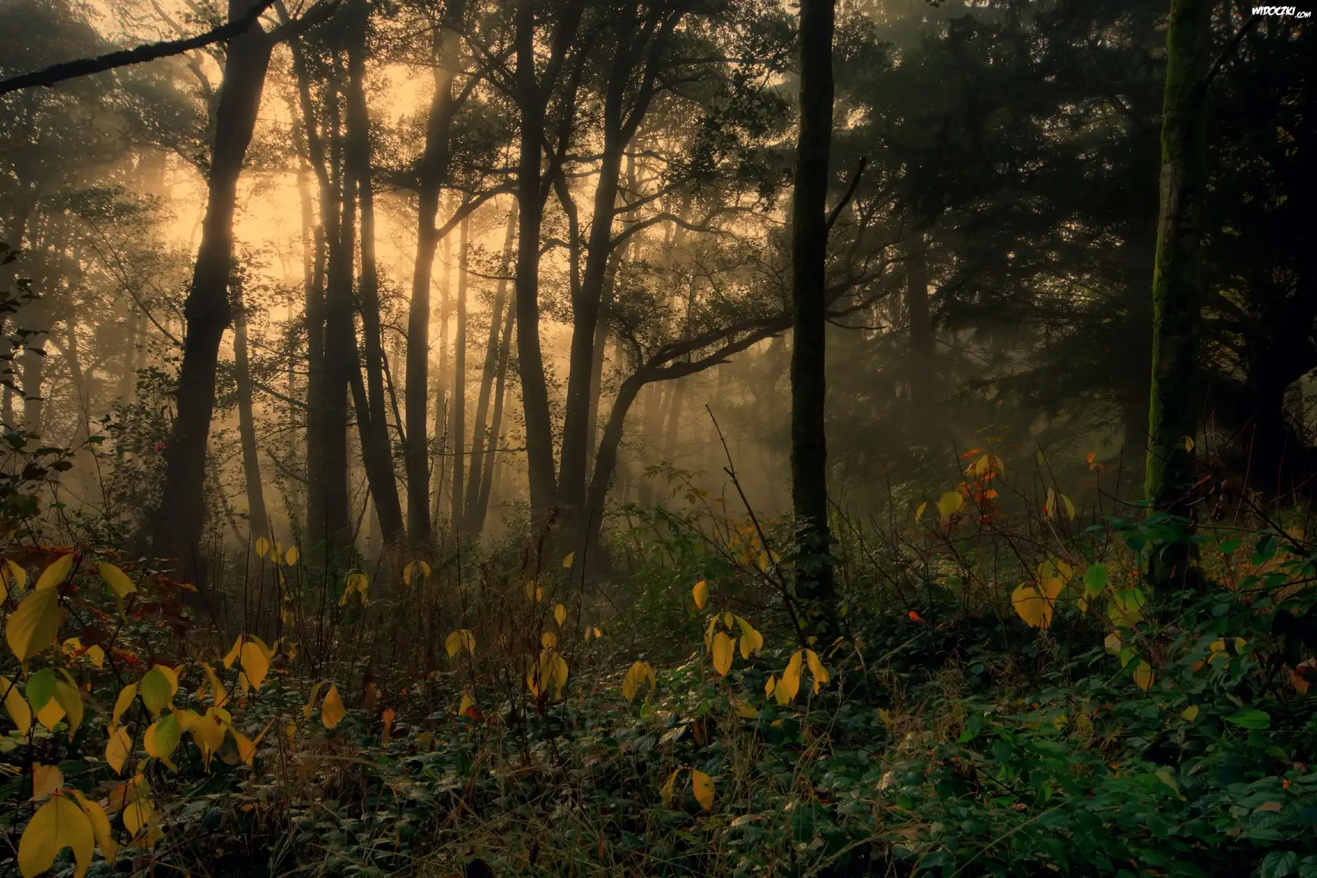 Las, Liściasty, Mgła, Zmierzch