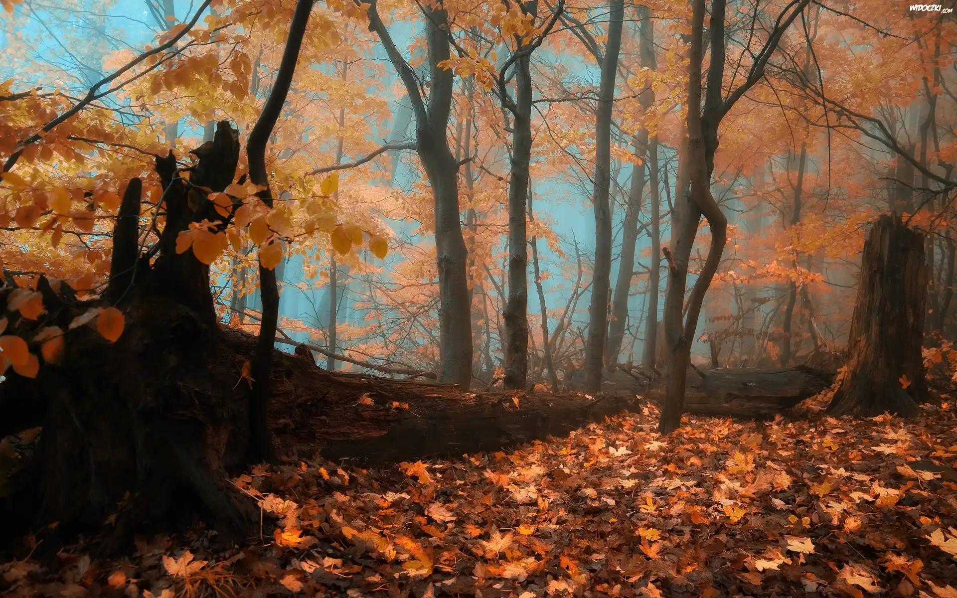 Zdjęcia, Las, Liście, Mgła, Jesień