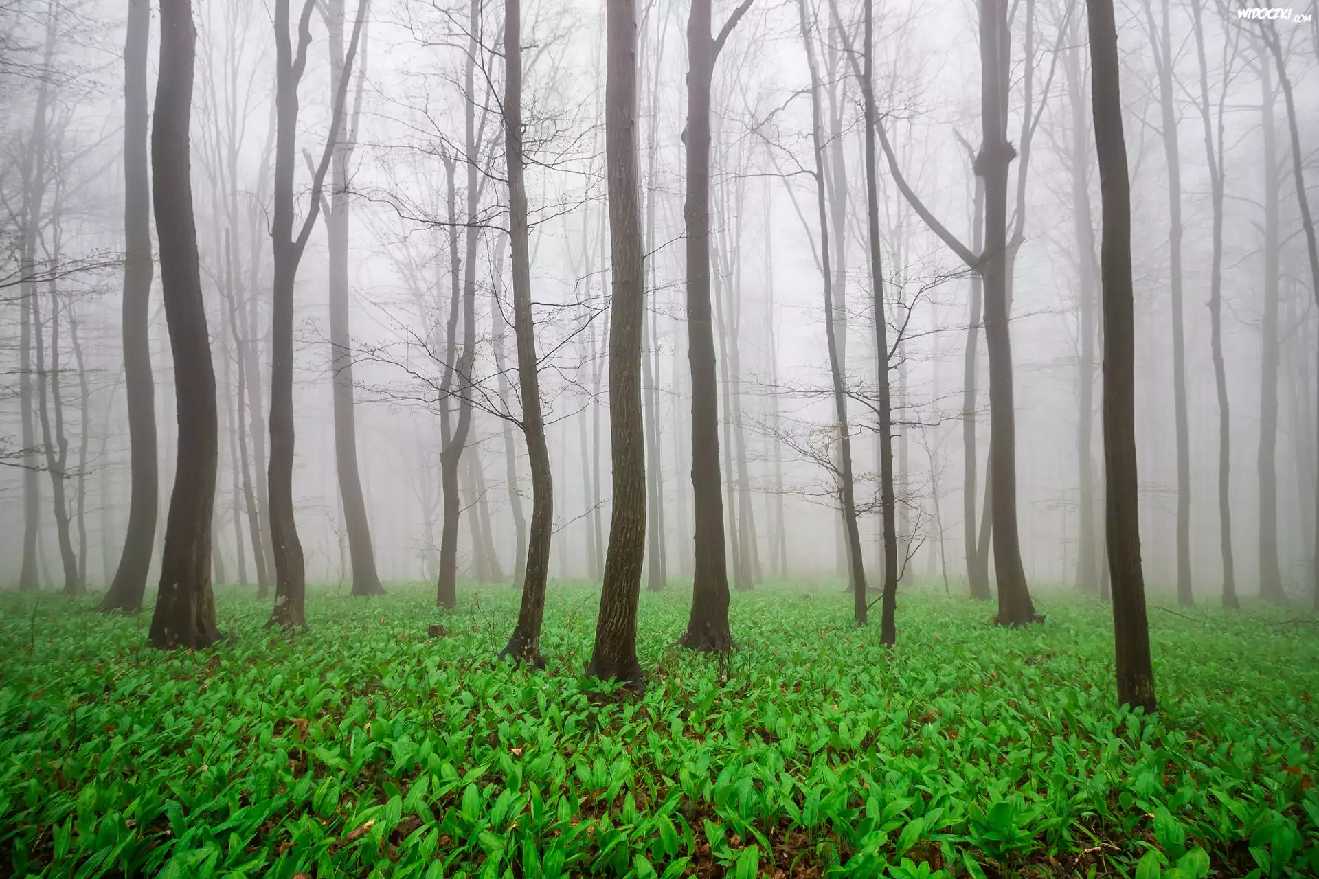 Zdjęcia, Las, Drzewa, Rośliny, Mgła, Wiosna