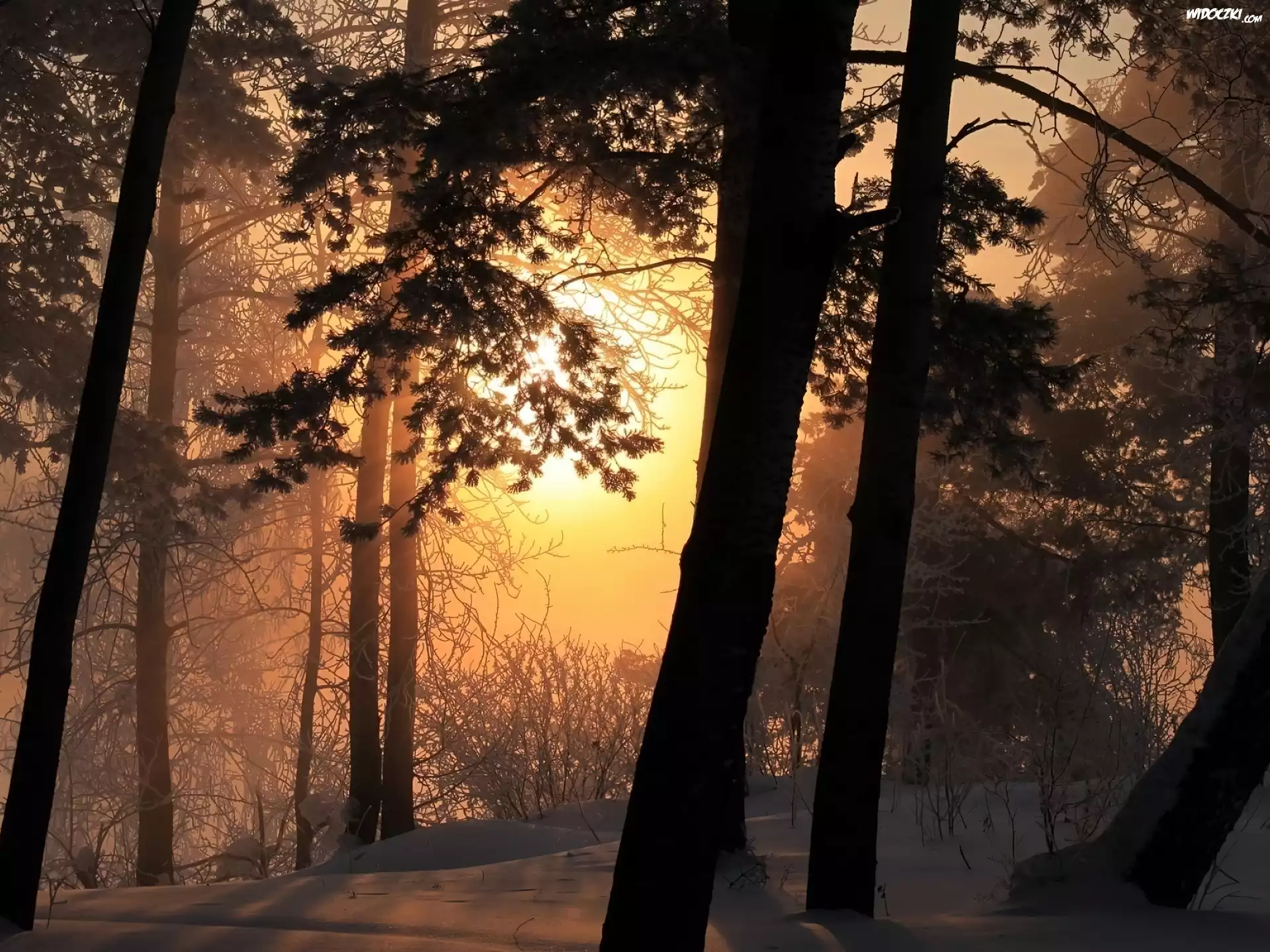 Las, Zima, Mgła, Słońce