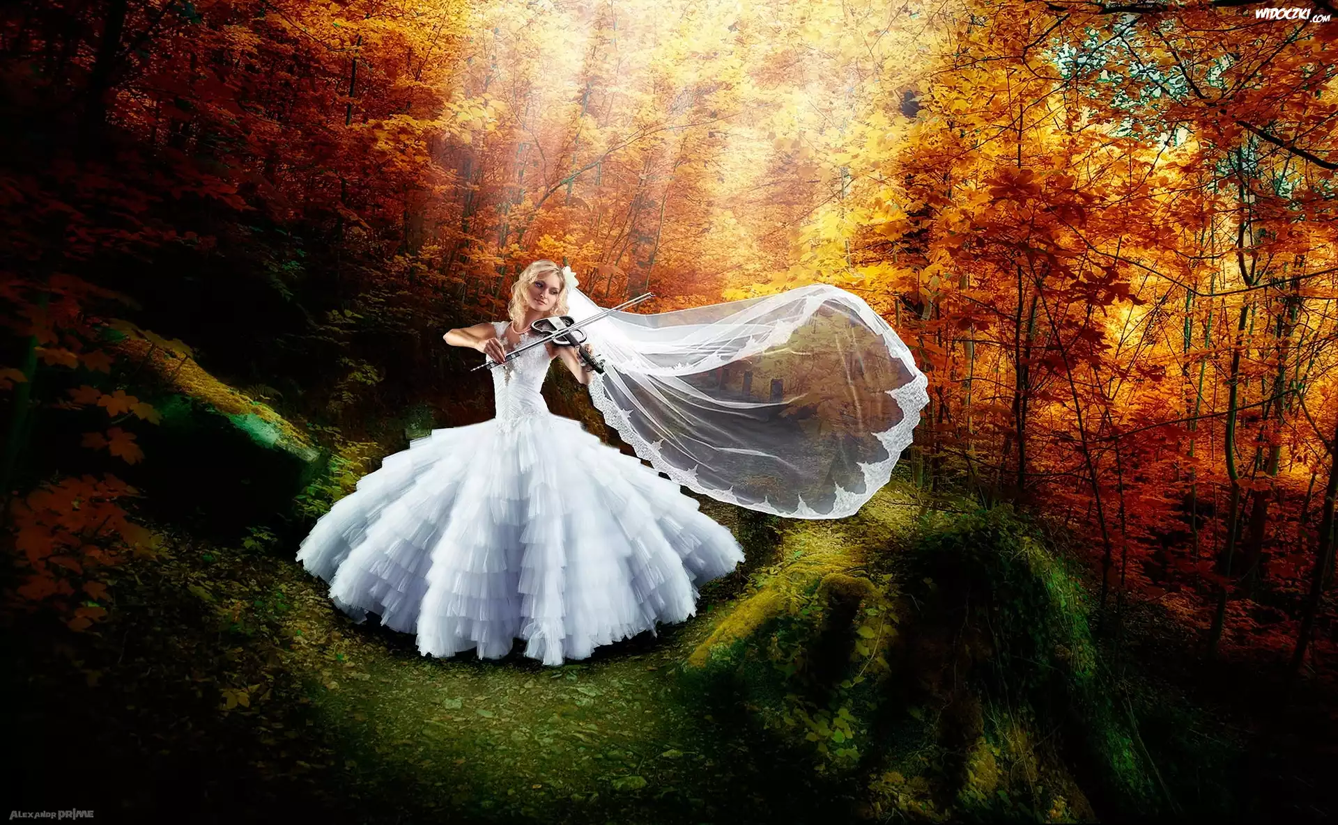 Zdjęcia, Las, Panna, Młoda, Skrzypce