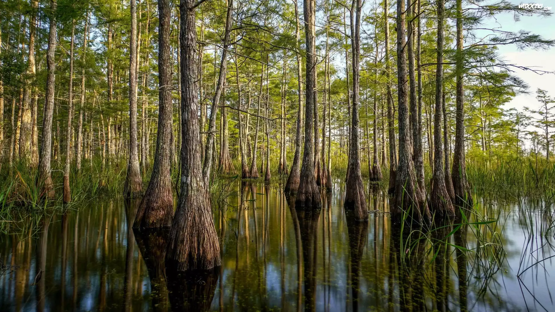 Las, Drzewa, Cyprysy, Mokradła, Rezerwat, Big Cypress National Preserve, Stan Floryda, Stany Zjednoczone |