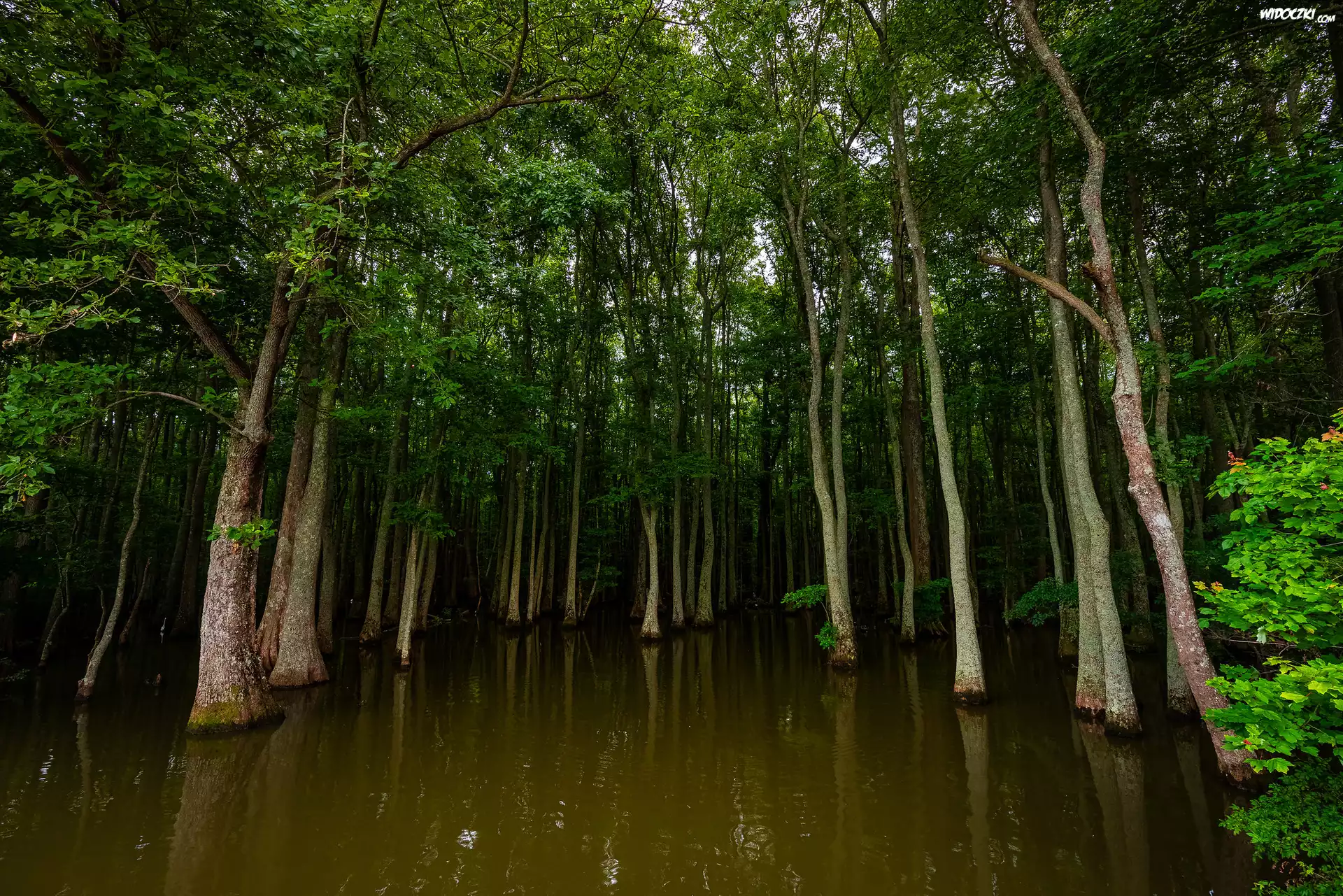Zdjęcia, Las, Drzewa, Mokradła
