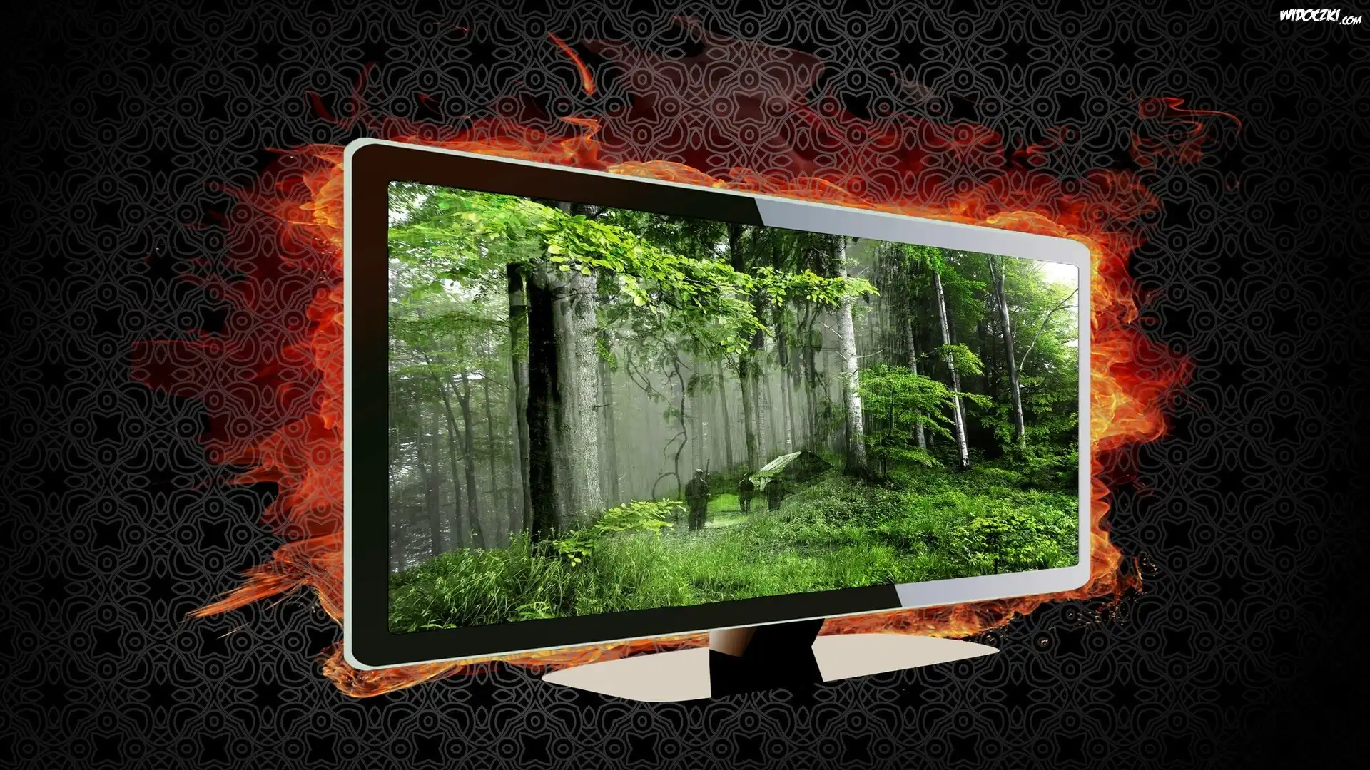 Zdjęcia, Monitor, Las, Ogień