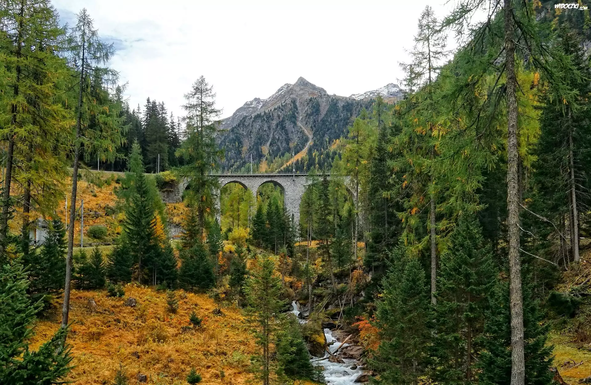 Zdjęcia, Las, Rzeczka, Rzeka, Wiadukt, Most, Drzewa