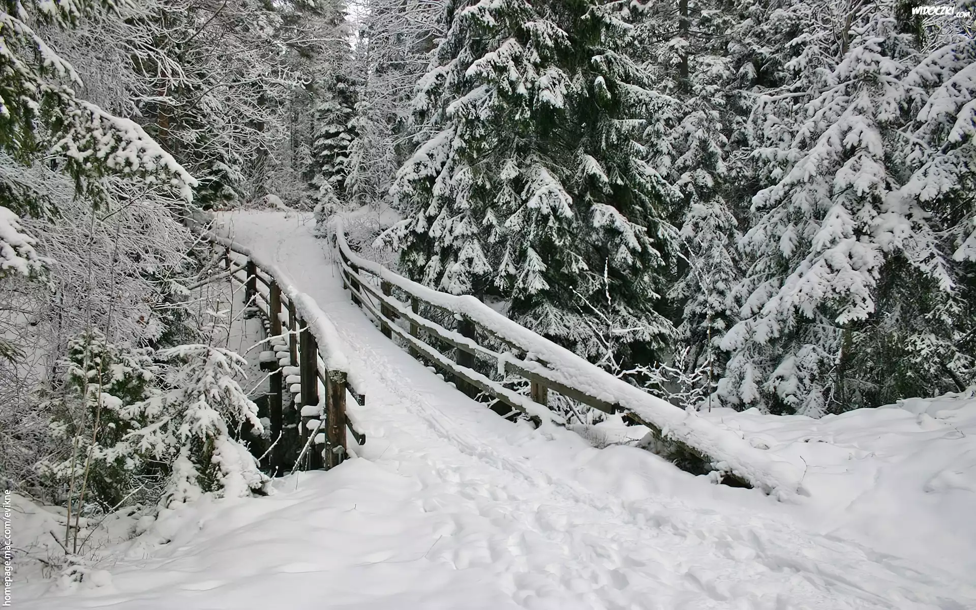 Zdjęcia, Las, Rzeka, Most, Zima