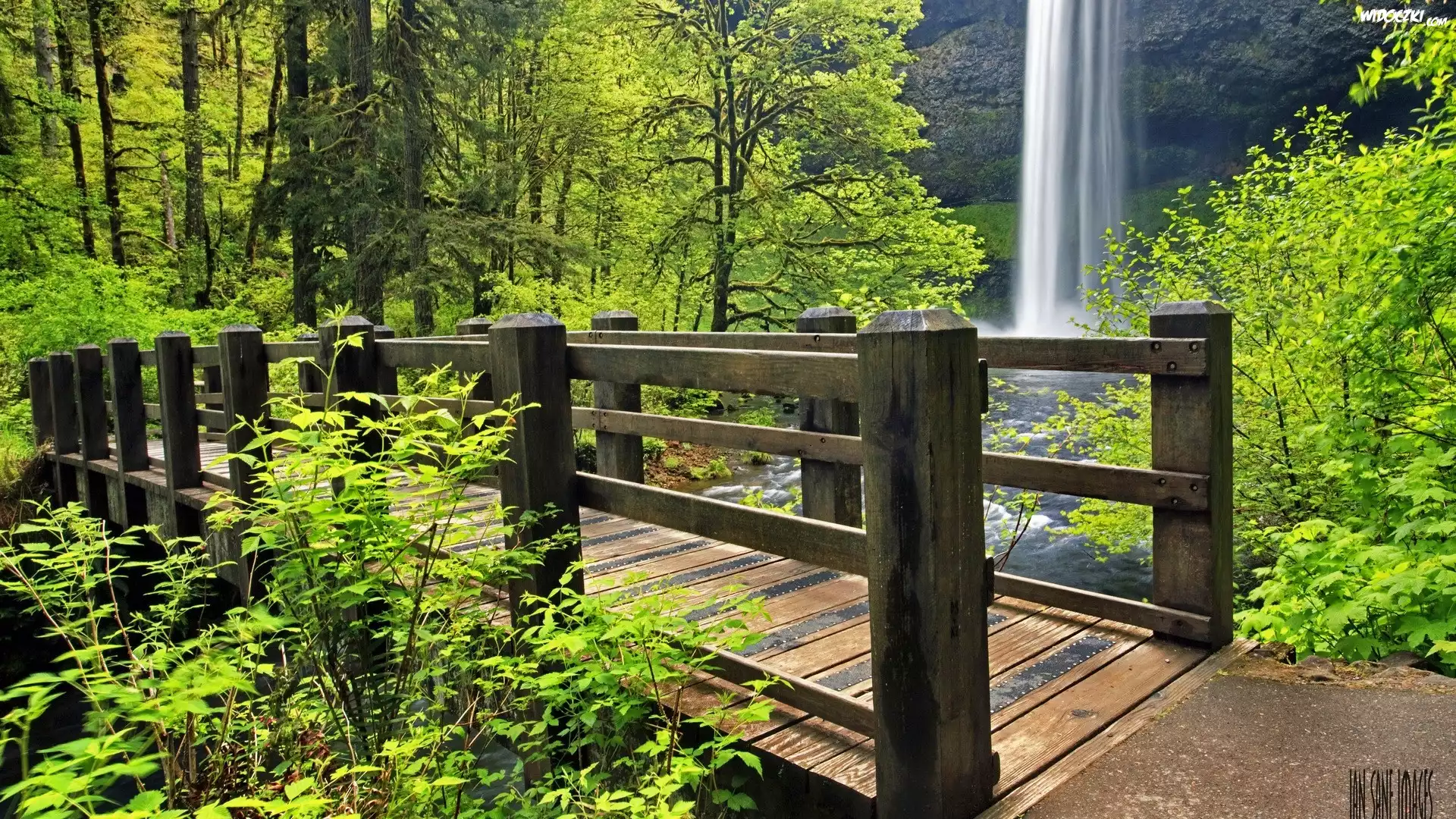 Zdjęcia, Las, Drewniany, Mostek, Wodospad