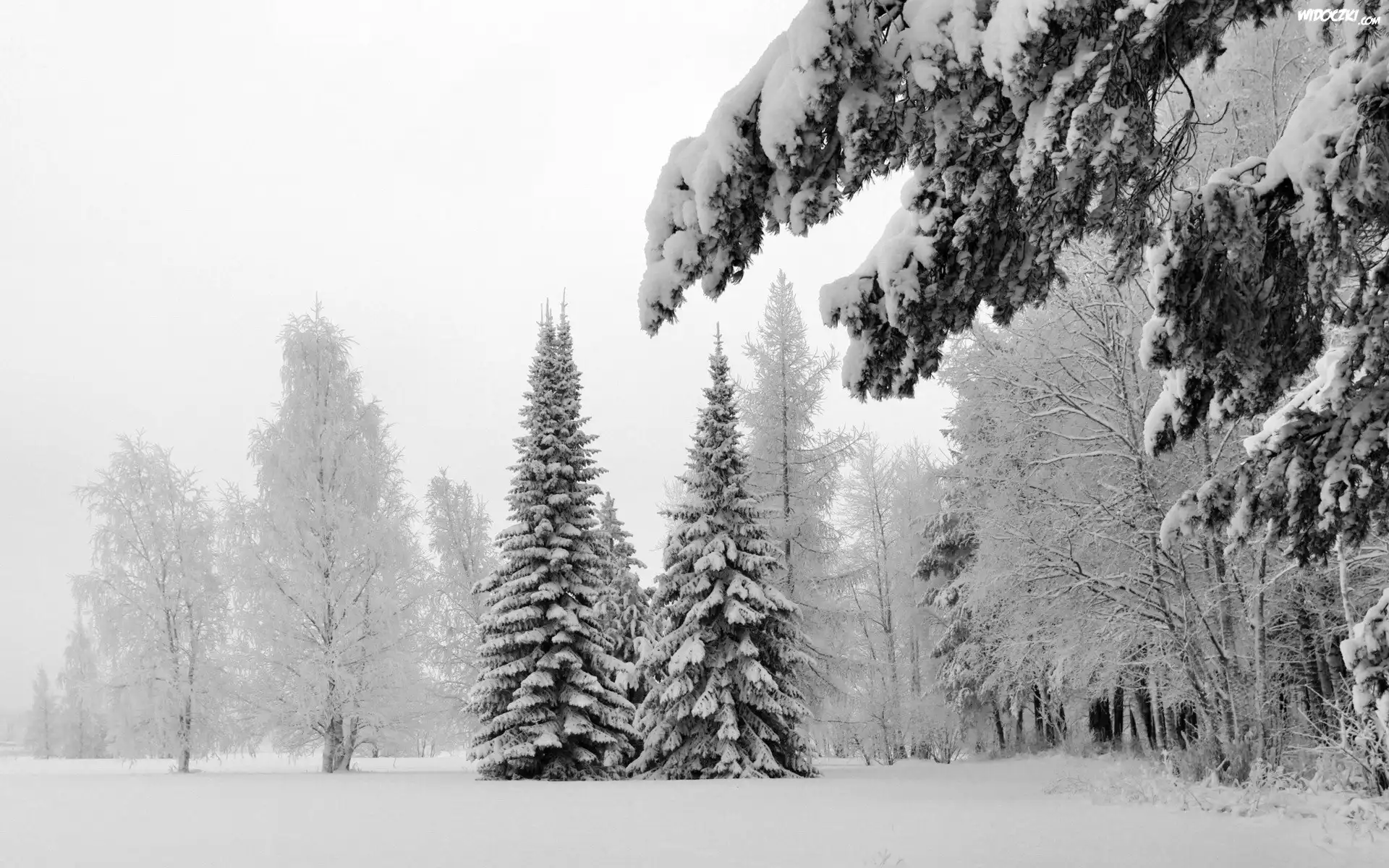 Las, Ośnieżone, Drzewa, Mrozny, Poranek
