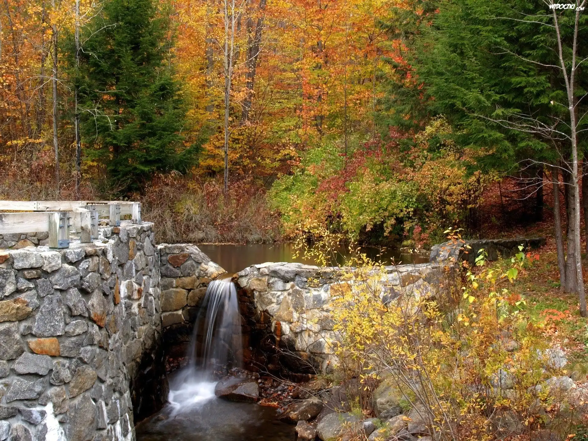 Zdjęcia, Las, Jezioro, Kamienny, Murek, Wodospad