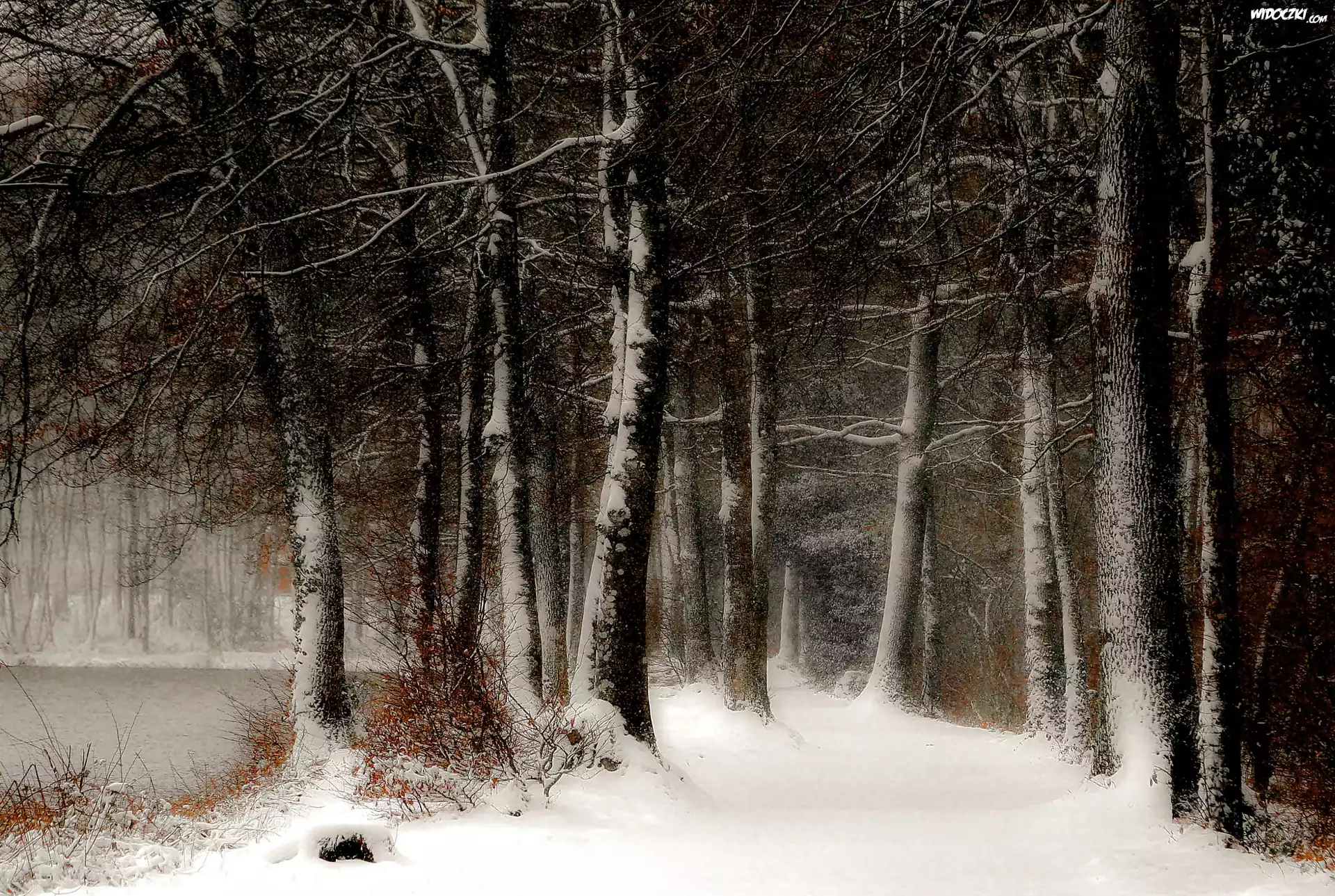 Zdjęcia, Las, Drzewa, Śnieg, Zima