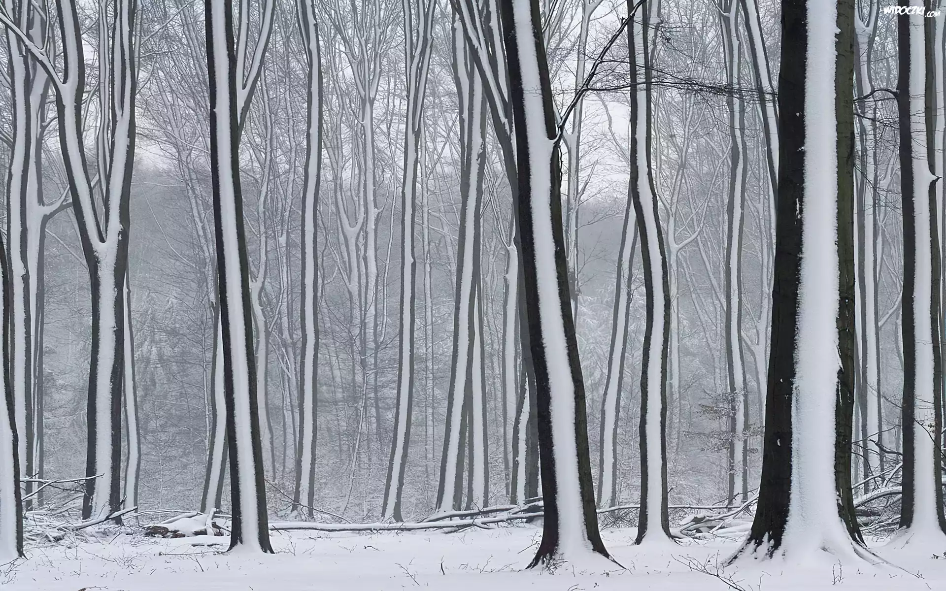 Zdjęcia, Las, Drzewa, Śnieżne, Pasy