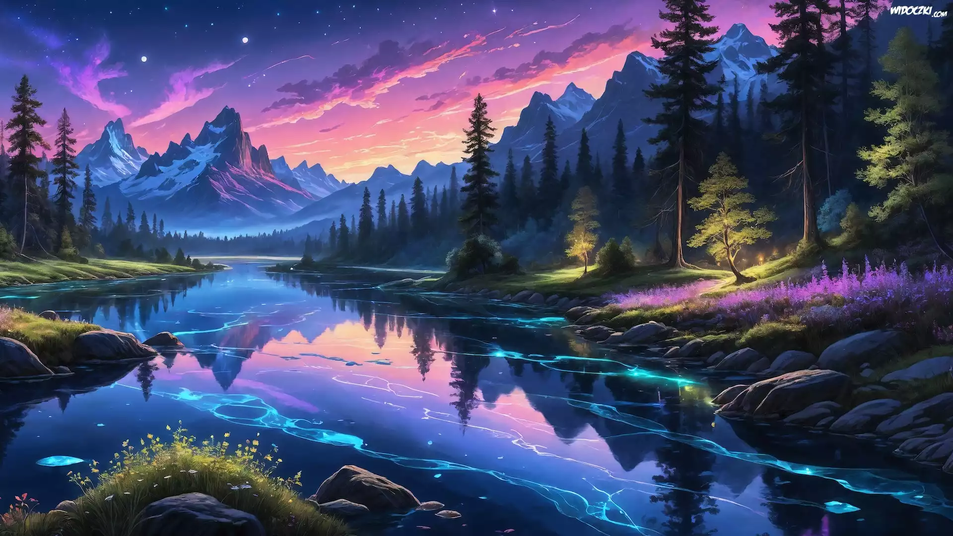 Grafika, Góry, Rzeka, Las, Drzewa, Odbicie