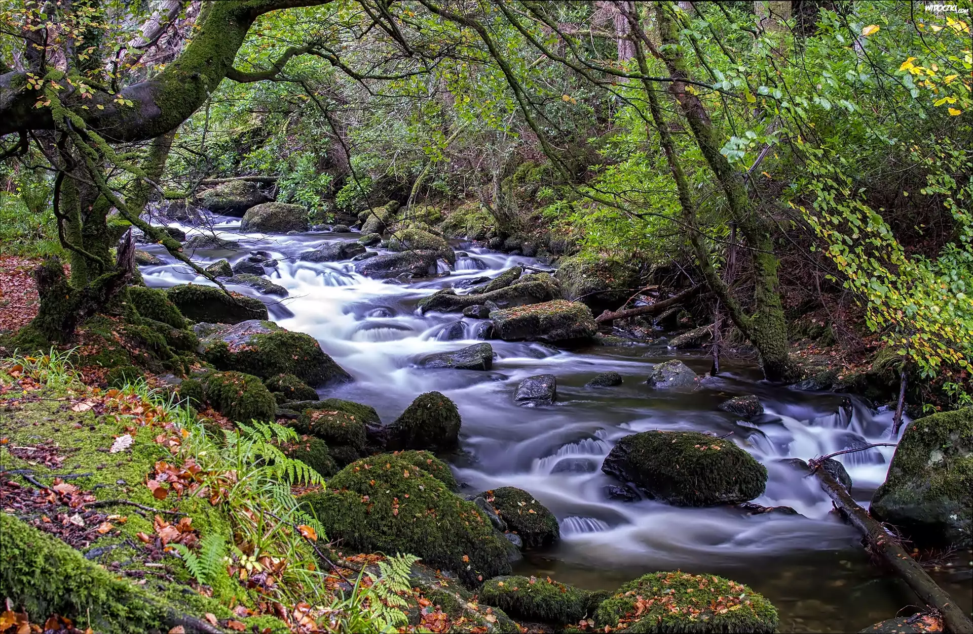 Zdjęcia, Las, Rzeka, Omszałe, Kamienie