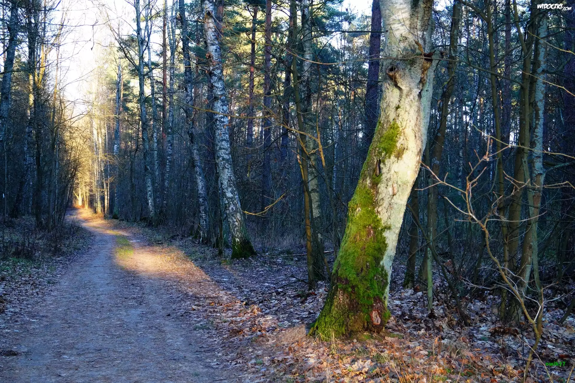 Zdjęcia, Las, Droga, Światło, Omszałe, Drzewo