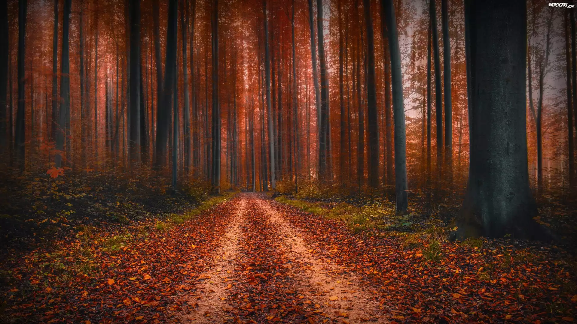Zdjęcia, Las, Jesień, Droga, Opadłe, Liście