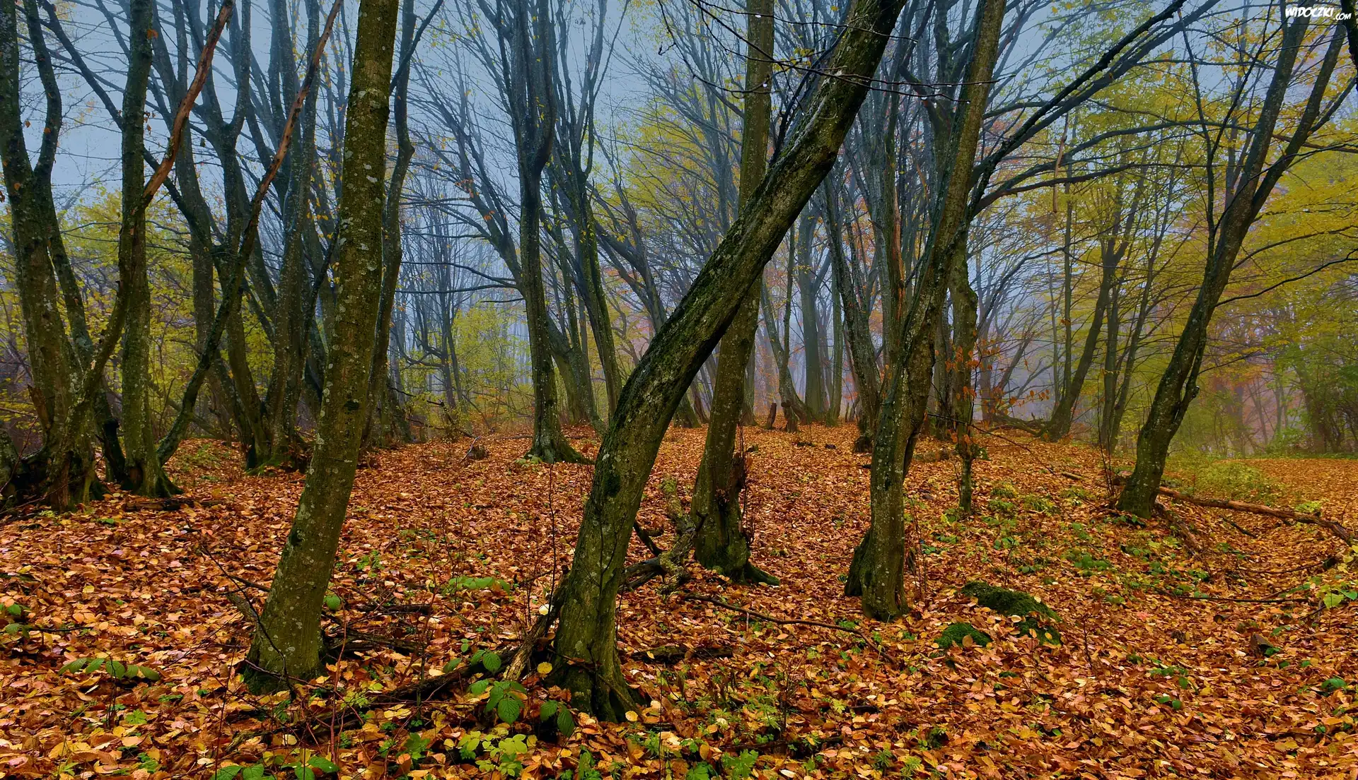 Zdjęcia, Las, Jesień, Drzewa, Opadłe, Liście