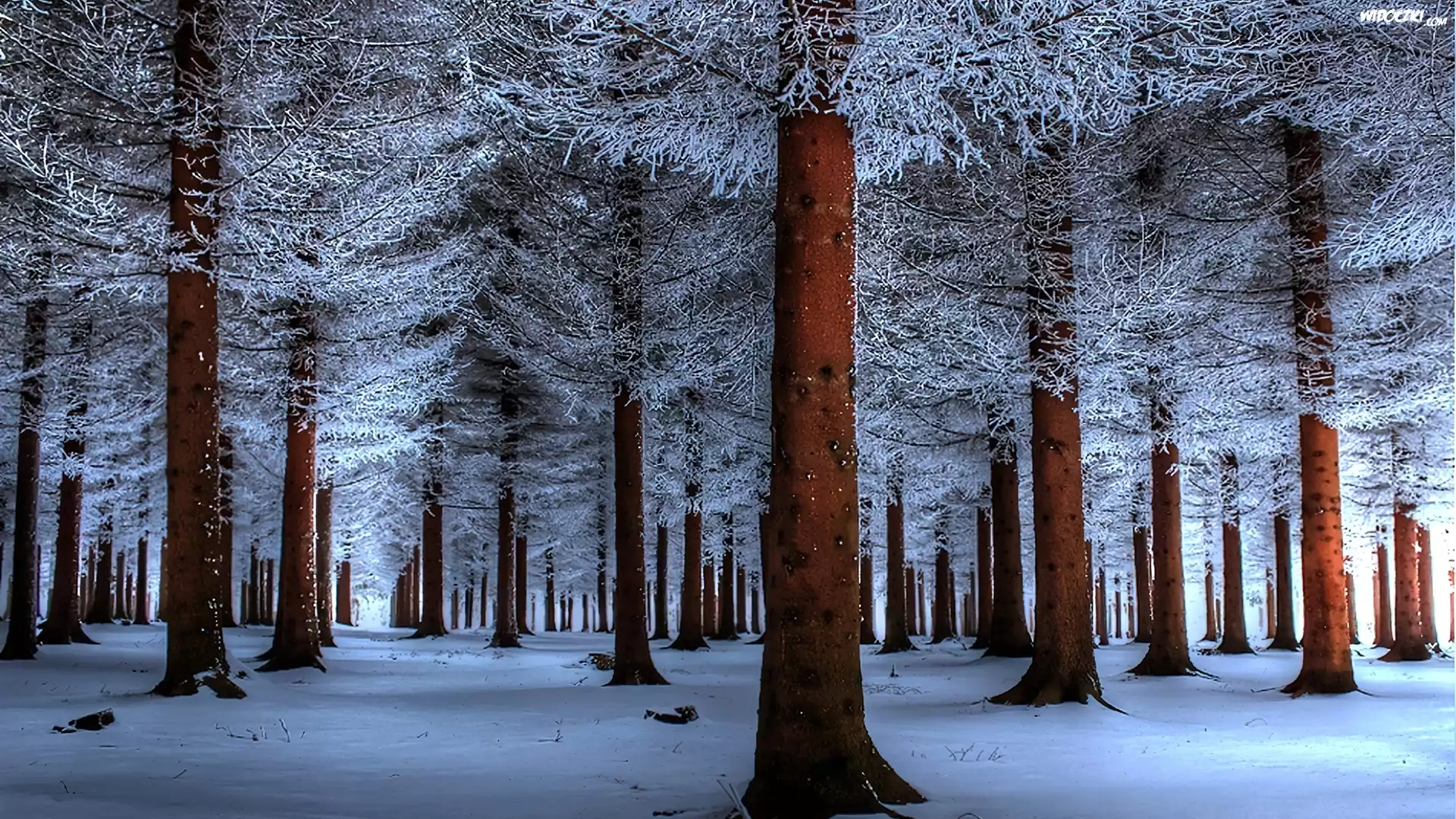 Zdjęcia, Las, Drzewa, Ośnieżone, Pnie