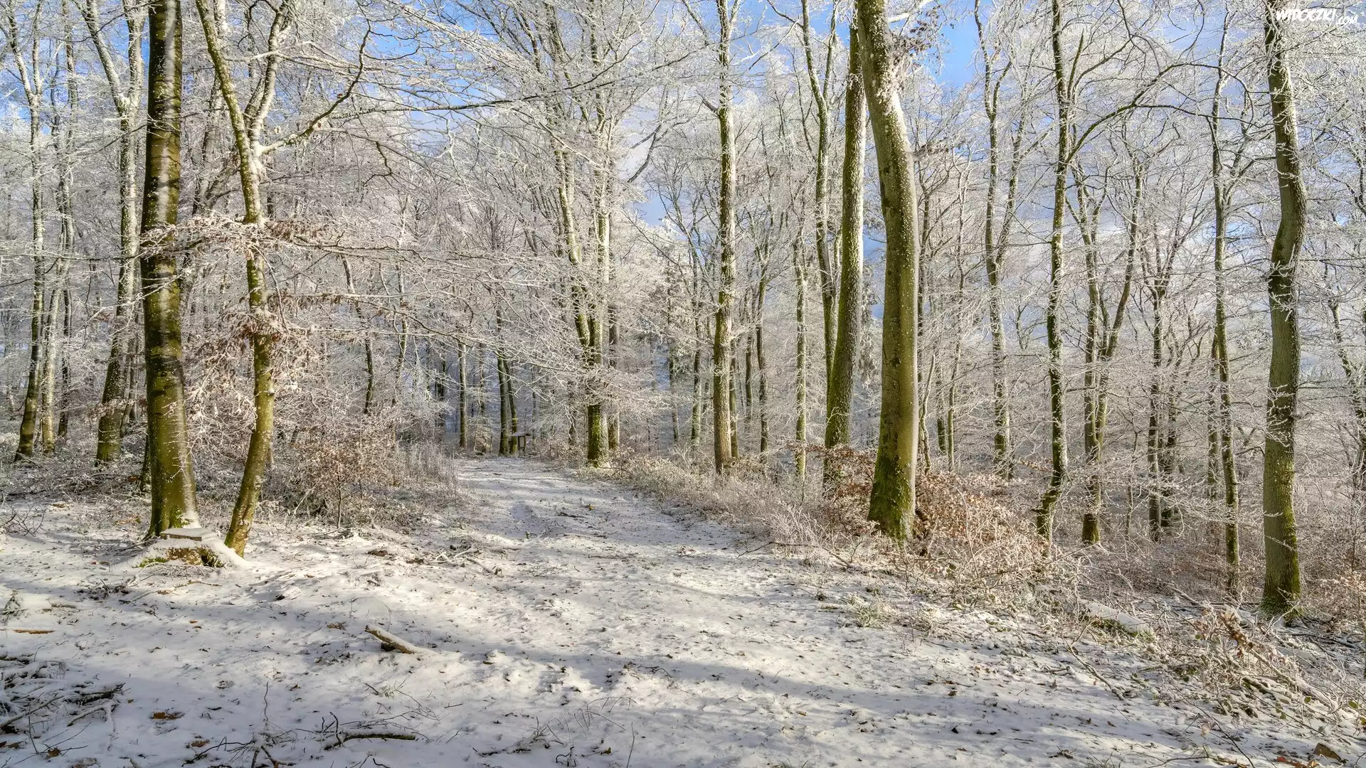 Zdj臋cia, Zima, Las, Oszronione, Drzewa, Droga