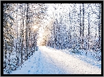 Zima, Śnieg, Droga, Las, Drzewa, Oszronione