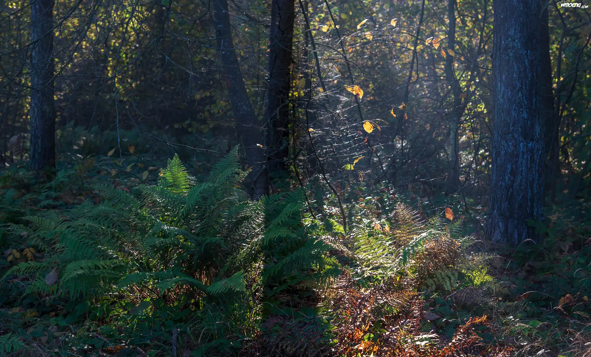 Zdjęcia, Las, Drzewa, Rośliny, Paproć, Liście
