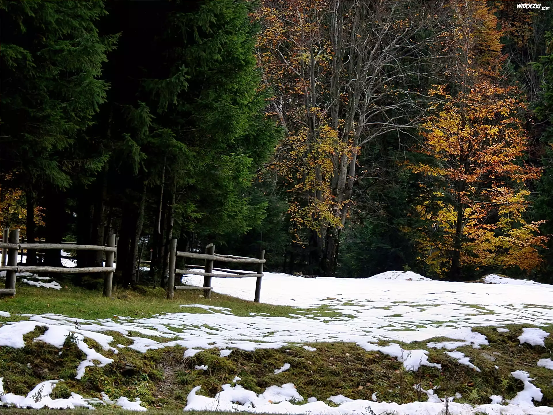 Zdjęcia, Las, Jesień, Pierwszy, Śnieg