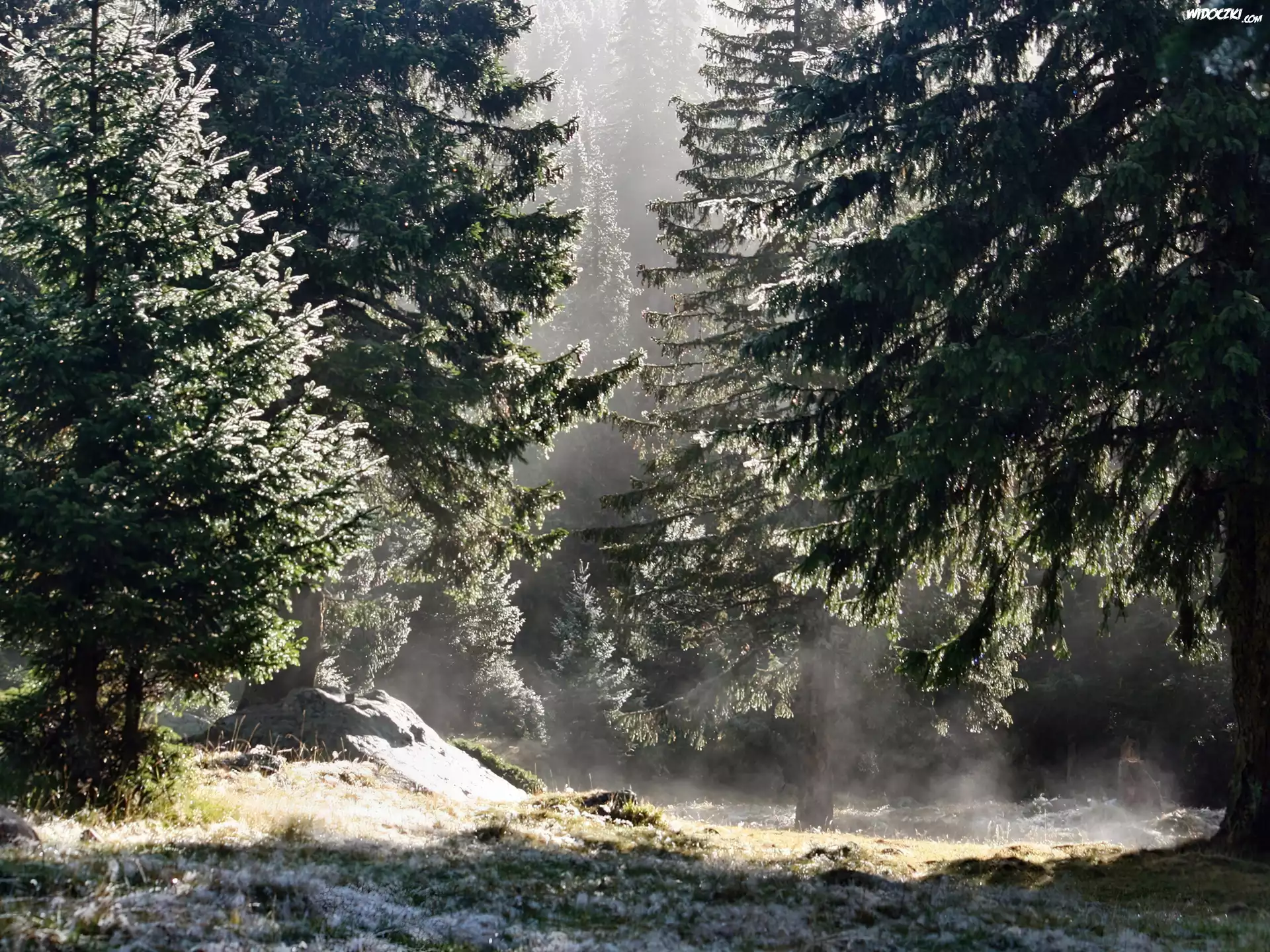 Zdjęcia, Las, Poranek, Pierwszy, Śnieg
