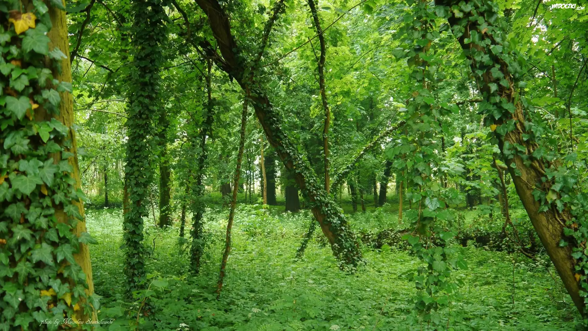 Zdjęcia, Las, Drzewa, Pnącze, Liście