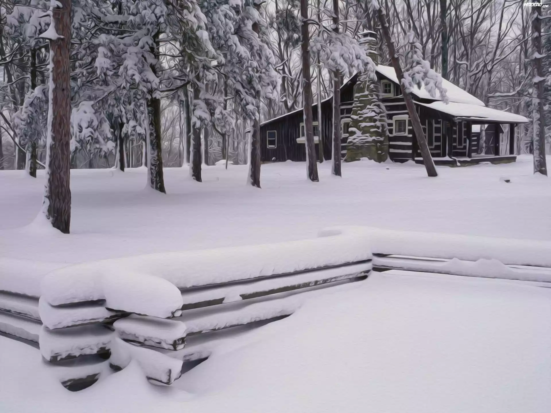 Las, Drewniany, Dom, Pokryte, Åšniegiem