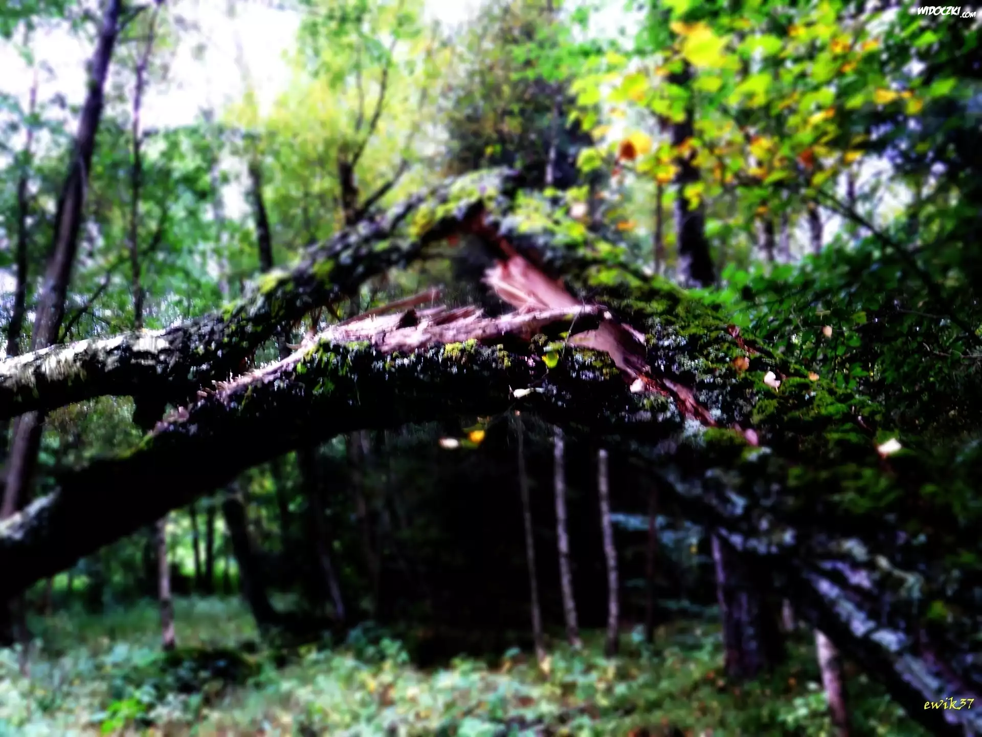 Zdjęcia, Las, Jesień, Połamane, Drzewo
