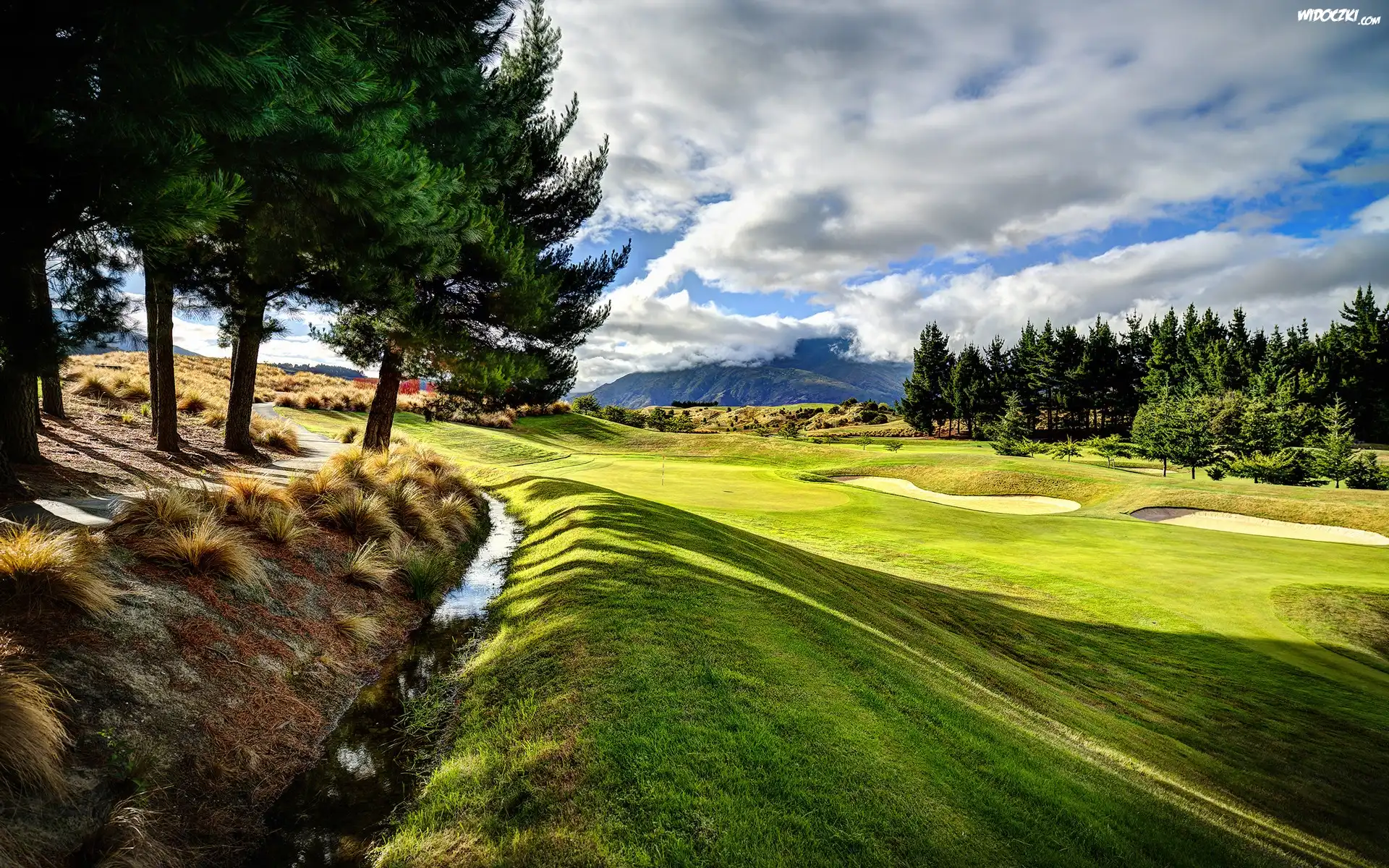 Zdjęcia, Łąka, Pole, Golfowe, Las, Chmury