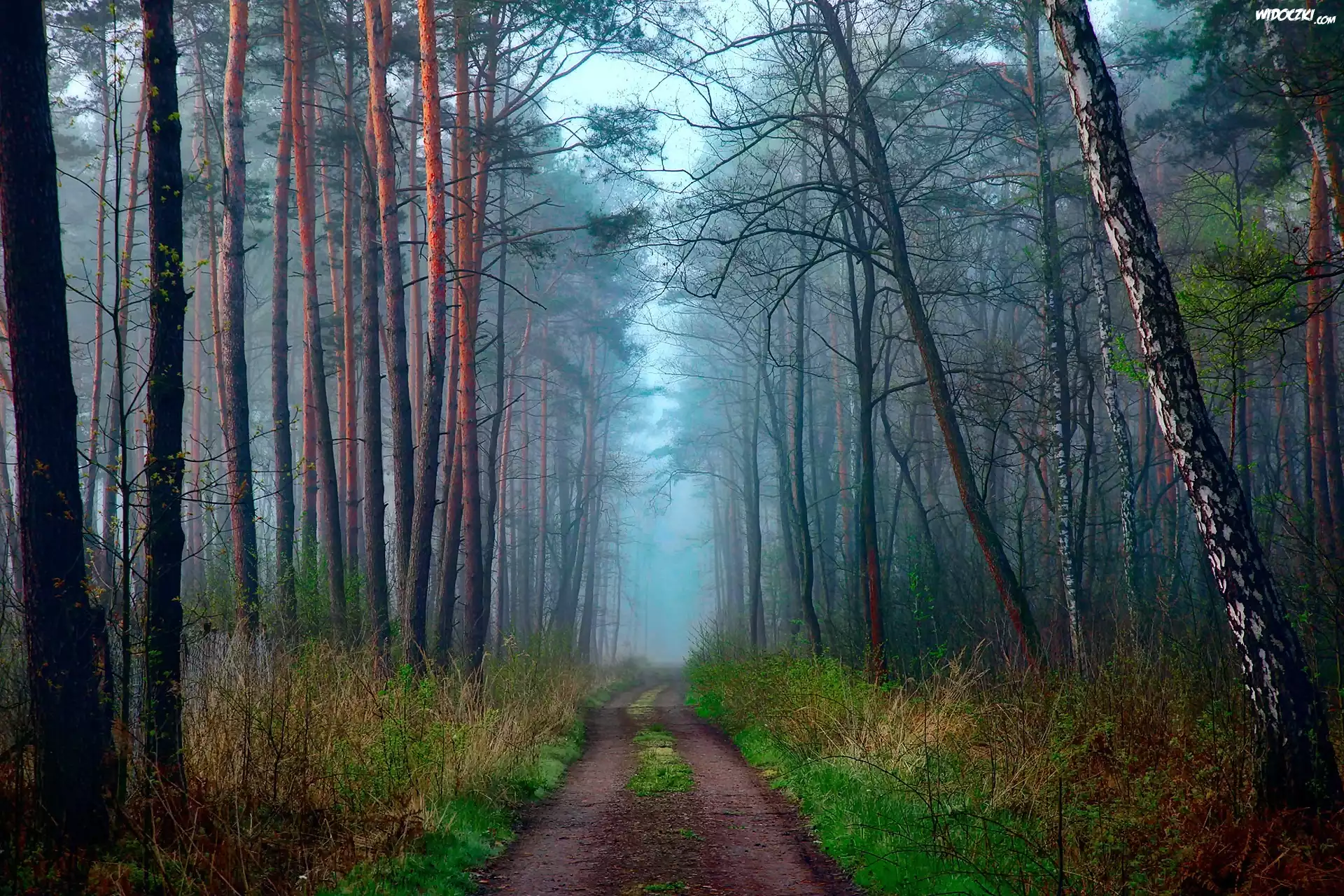 Zdjęcia, Las, Droga, Poranek, Mgła