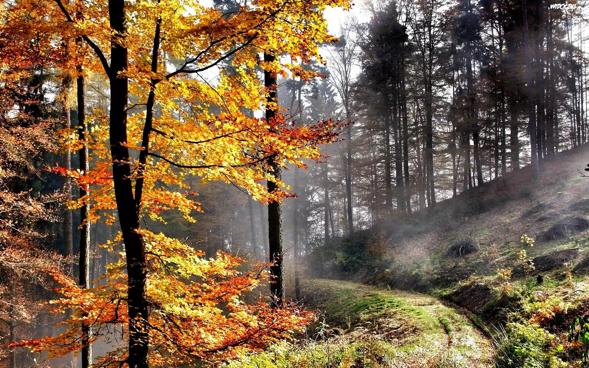 Zdjęcia, Las, Droga, Poranek, Mgła