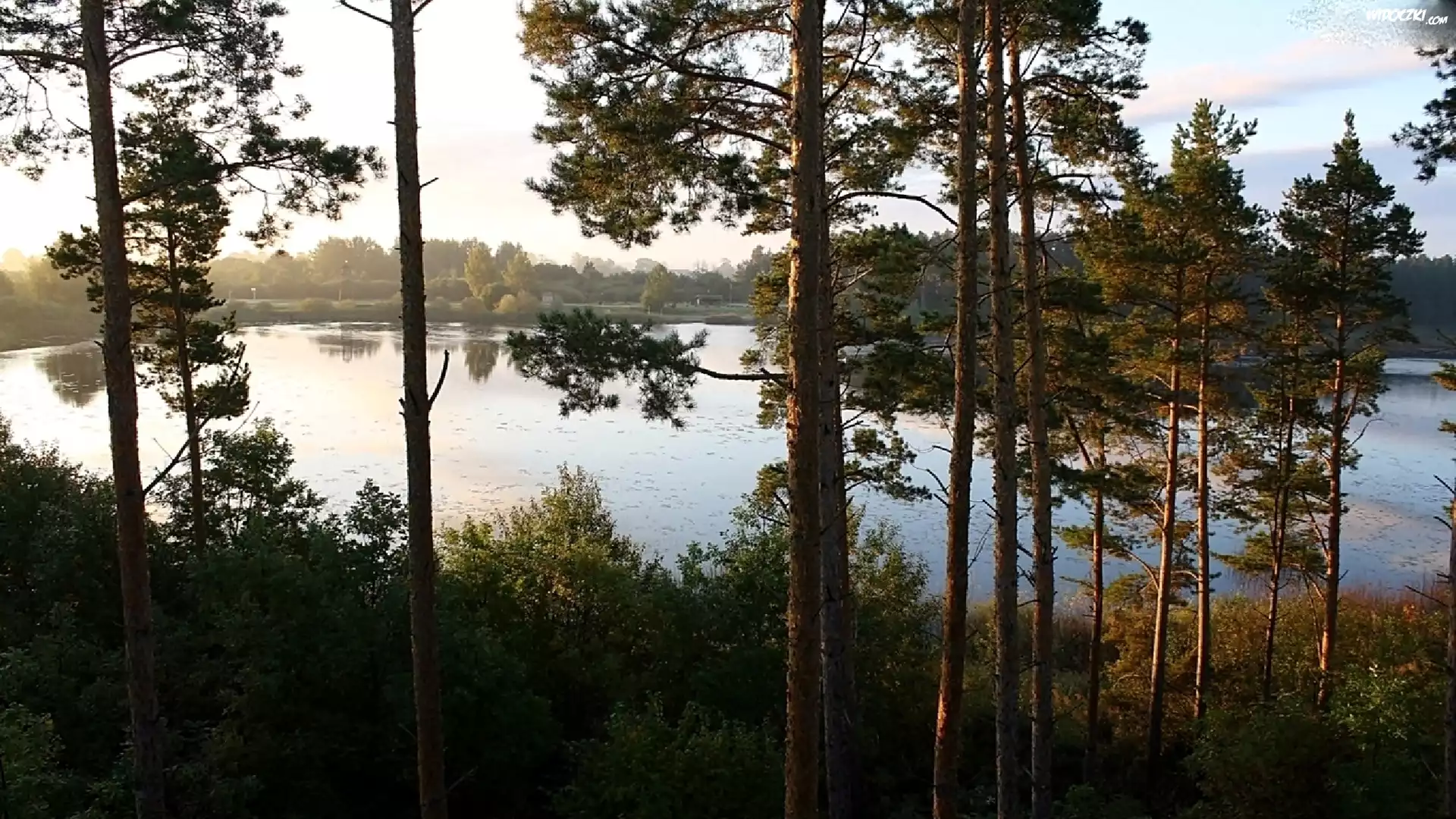 Zdjęcia, Las, Jezioro, Poranek, Mgła