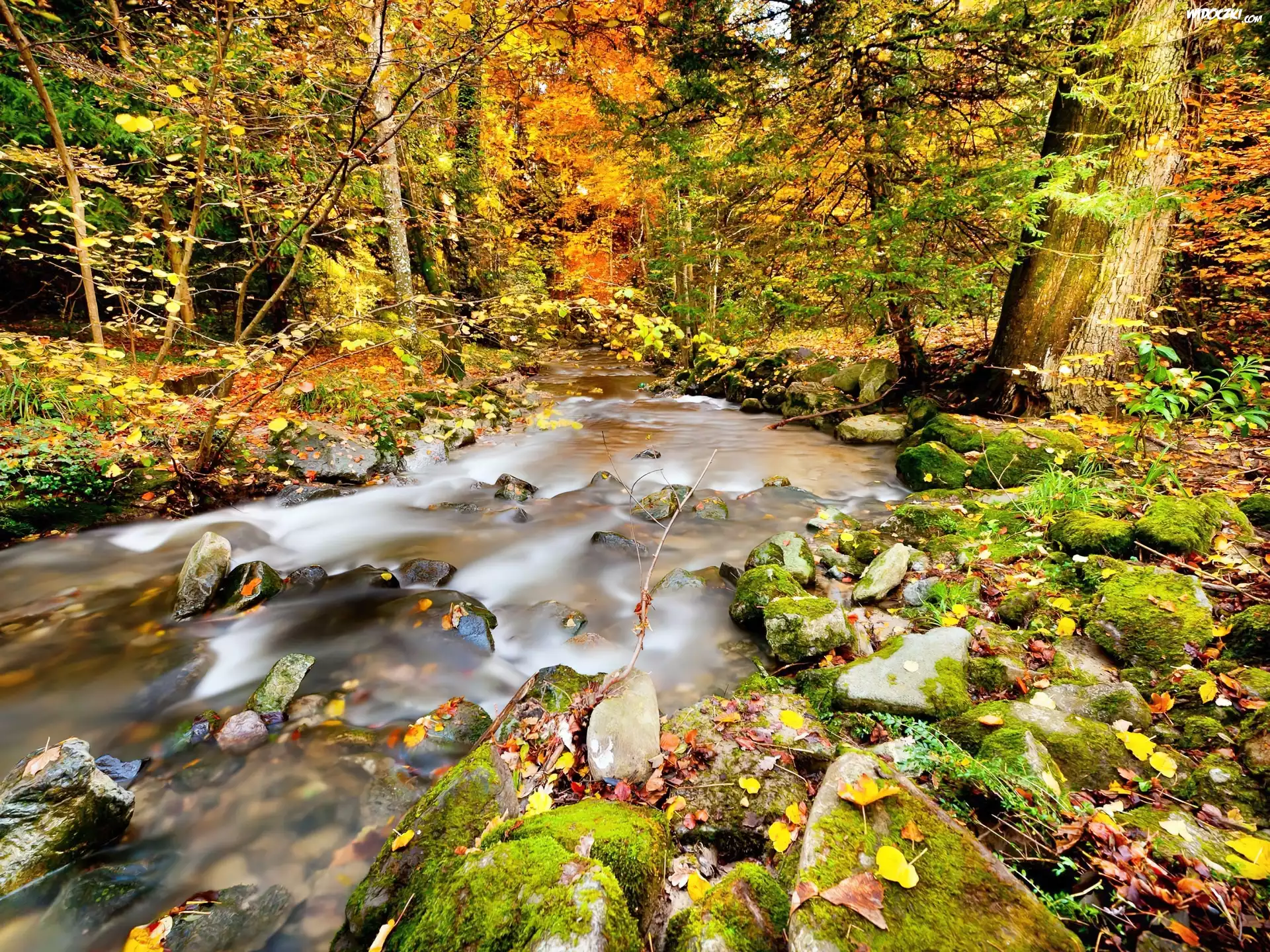 Zdjęcia, Las, Rwący, Potok, Jesień