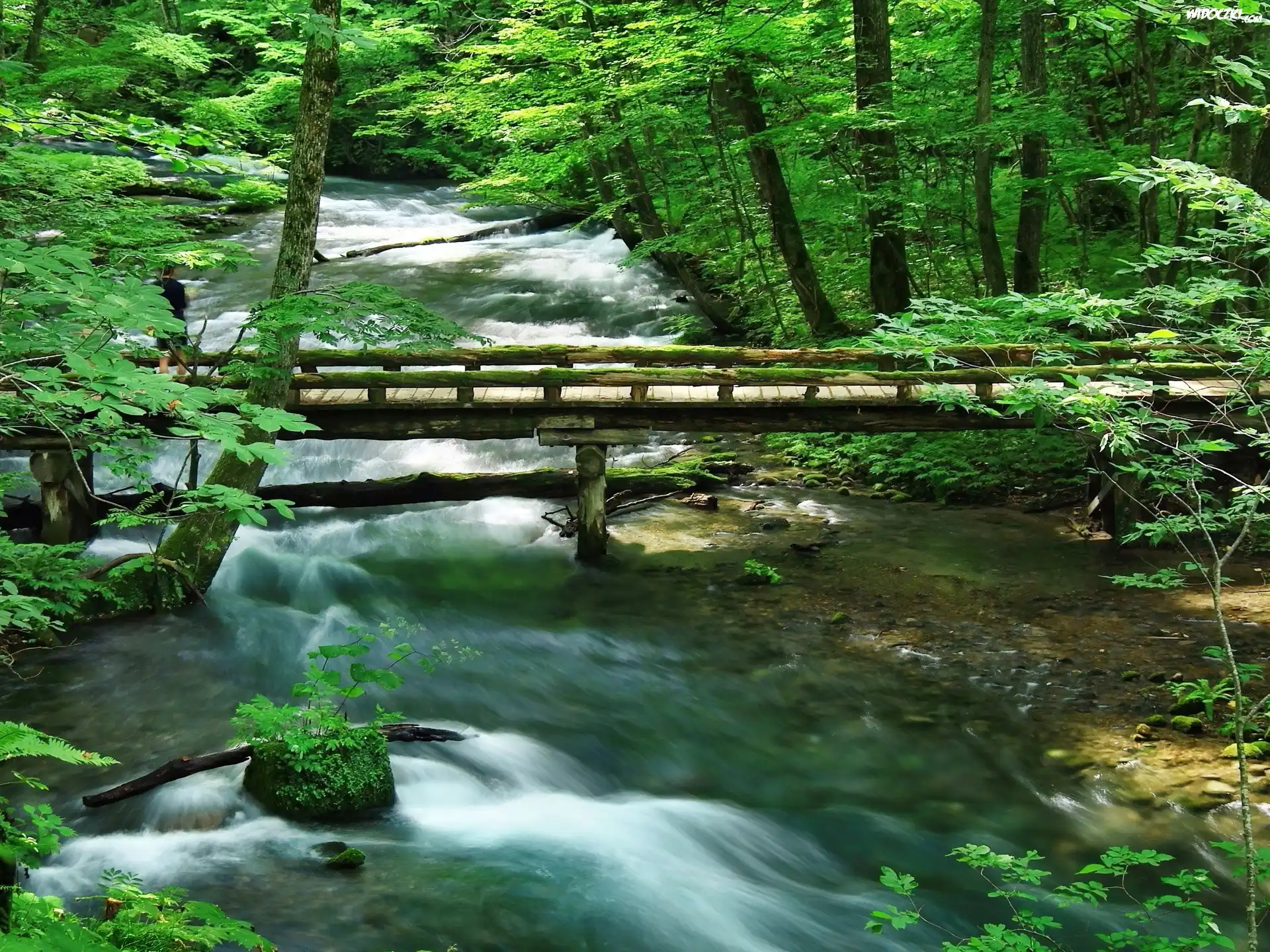 Zdjęcia, Las, Rwący, Potok, Mostek
