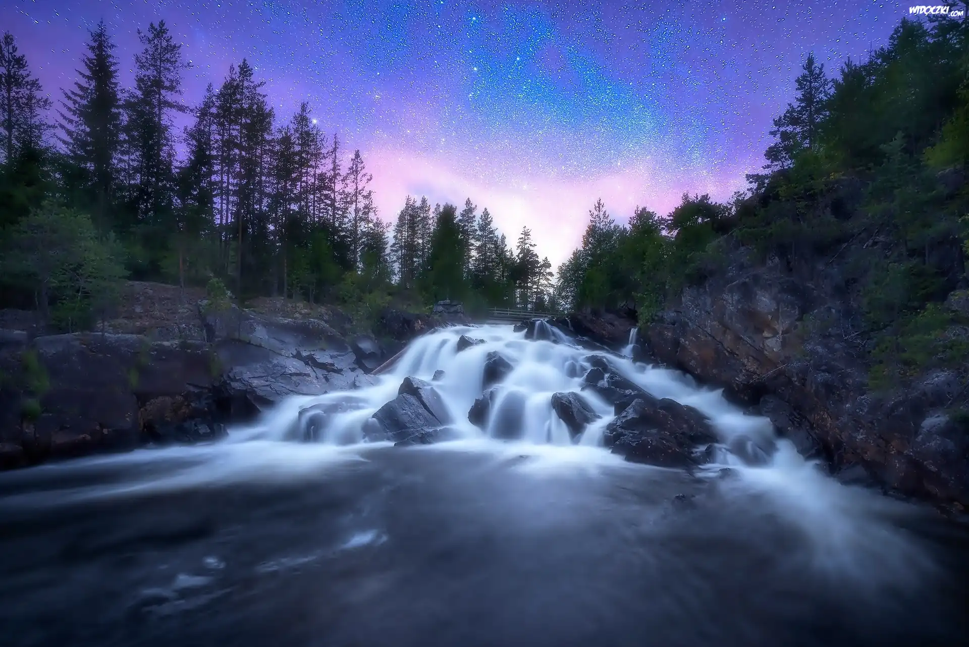Zdjęcia, Las, Skały, Rwący, Potok, Noc