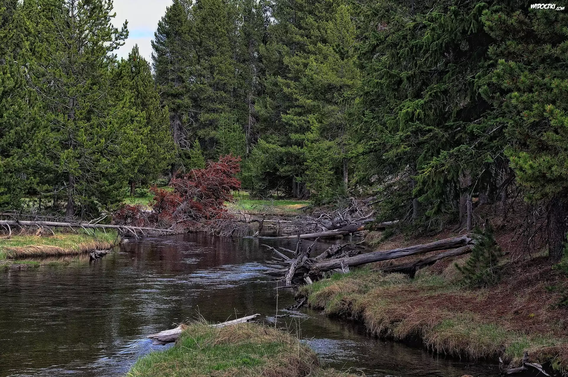 Zdjęcia, Las, Rzeka. Powalone, Drzewa