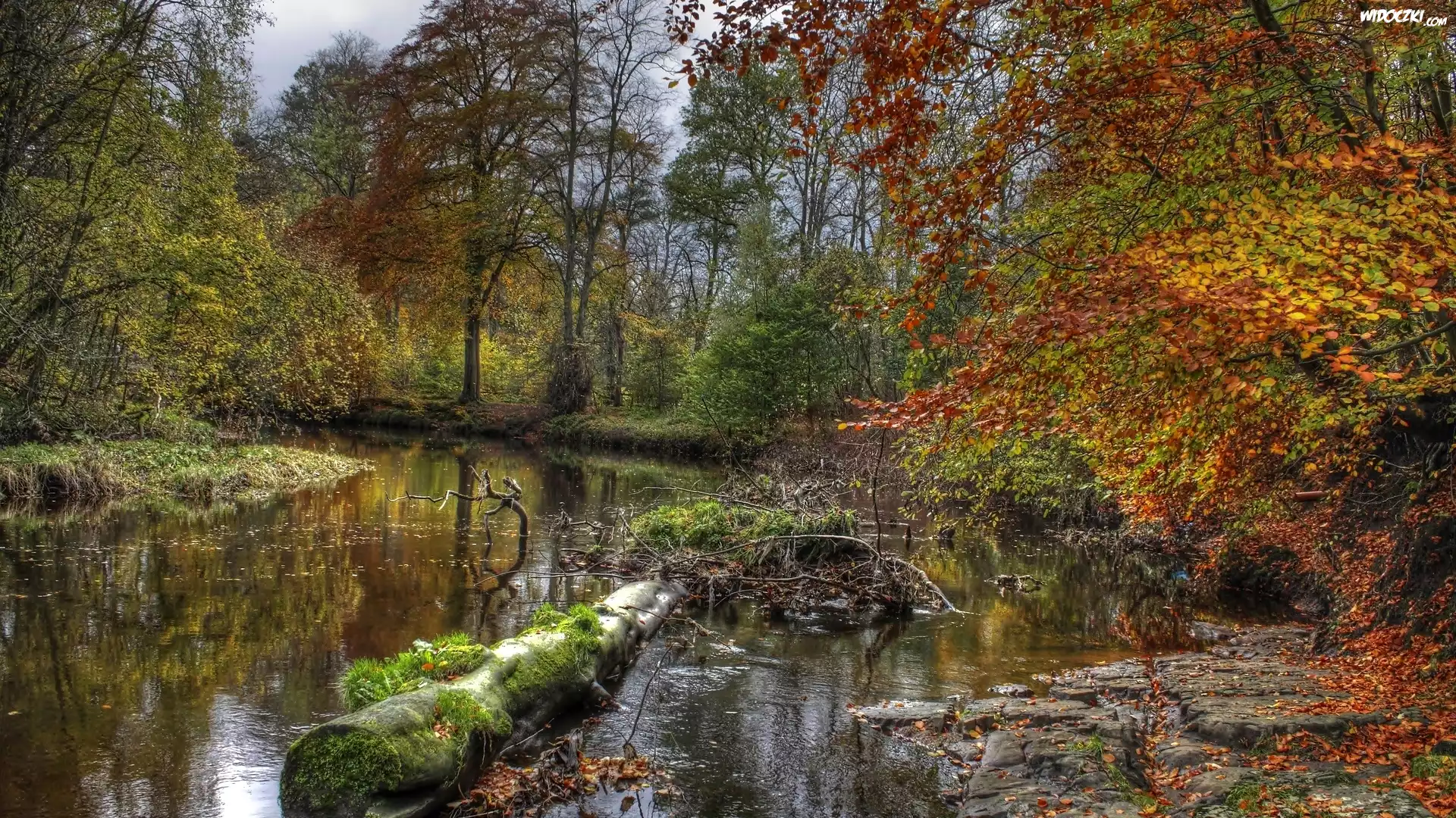 Zdjęcia, Las, Rzeka, Powalone, Drzewo