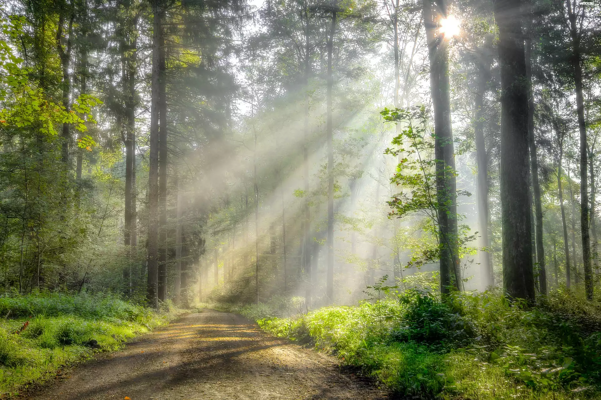 Zdjęcia, Las, Droga, Promienie słońca