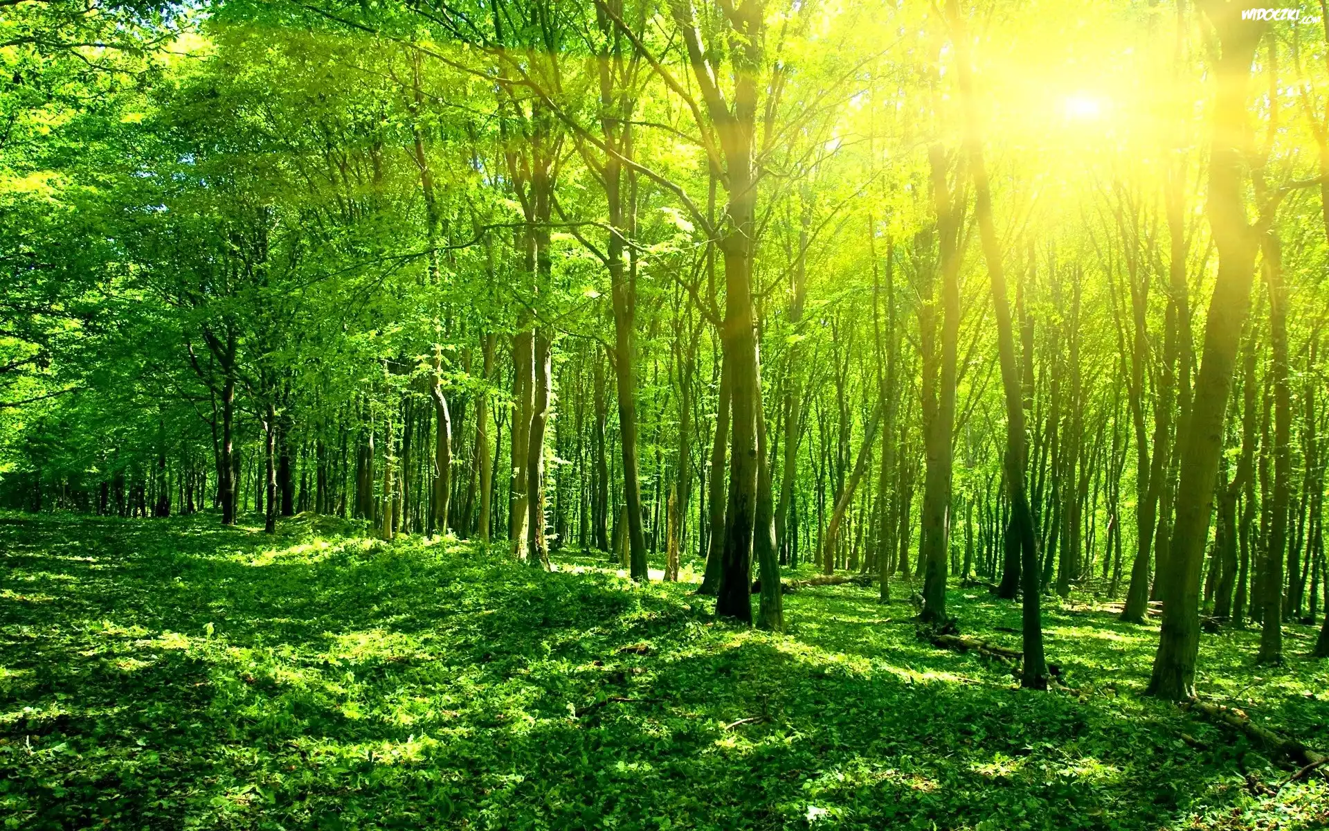 Las, Drzewa, Promienie, Słońca