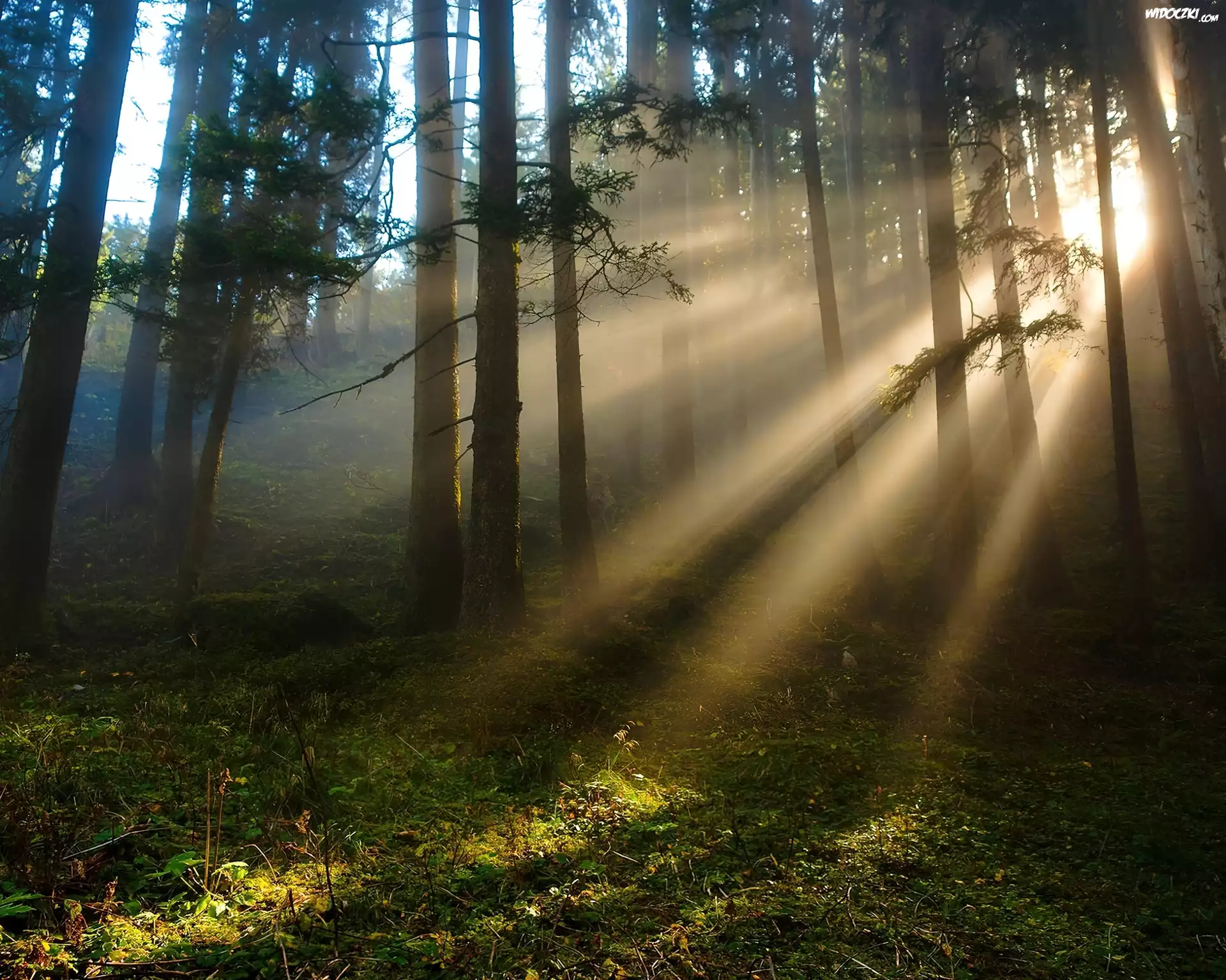 Zdjęcia, Las, Drzewa, Promienie, Słońca
