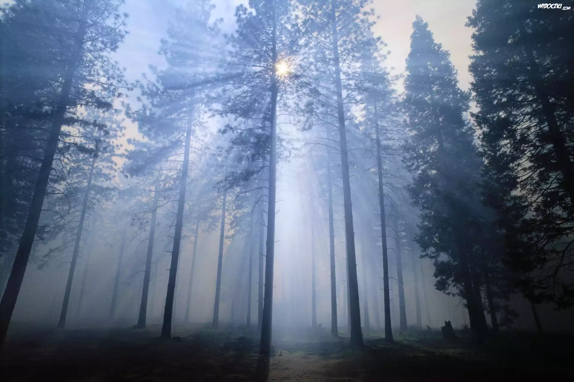 Zdjęcia, Las, Mgła, Promienie słońca