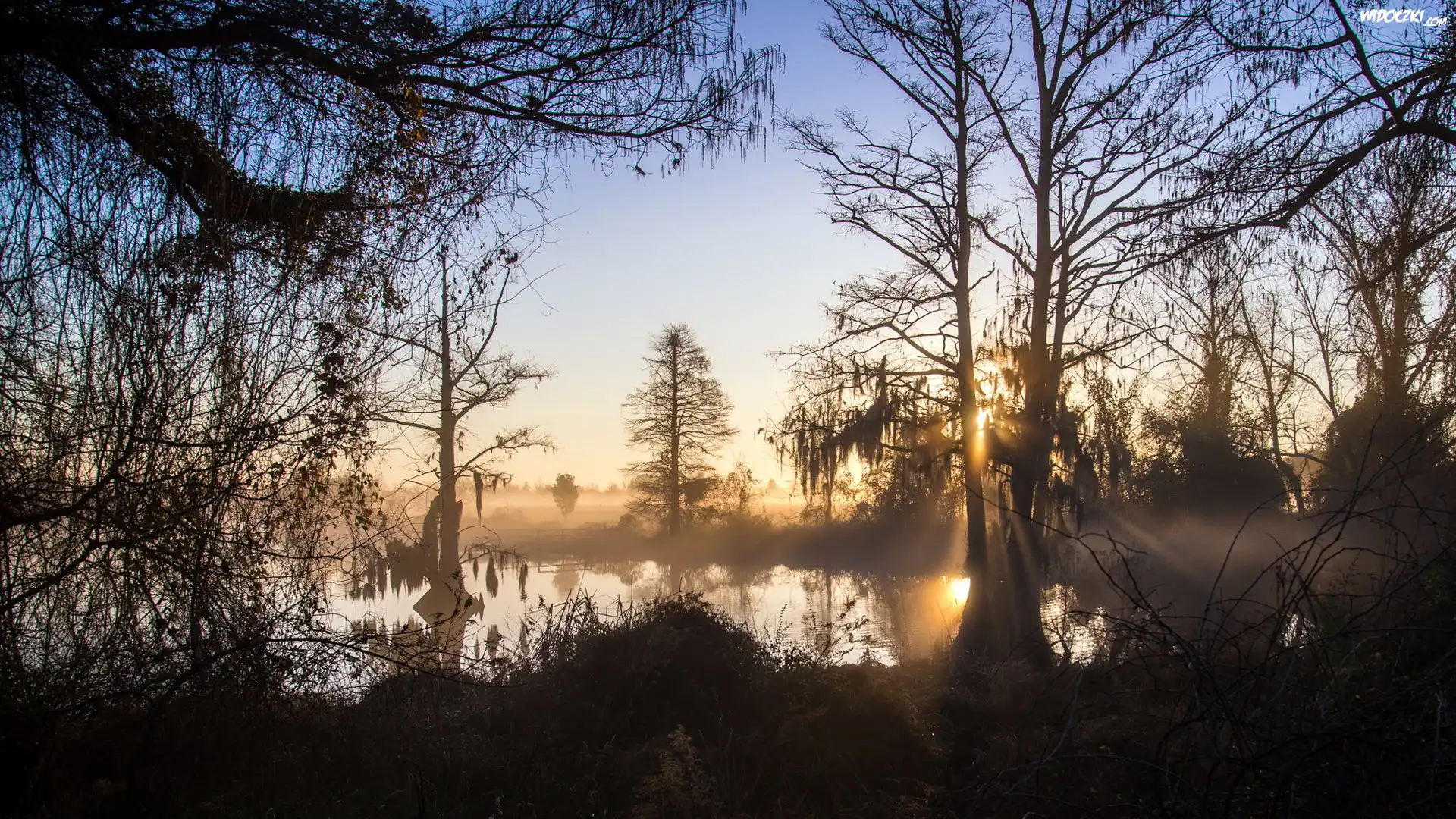 Zdjęcia, Las, Rzeka, Promienie, Słońca