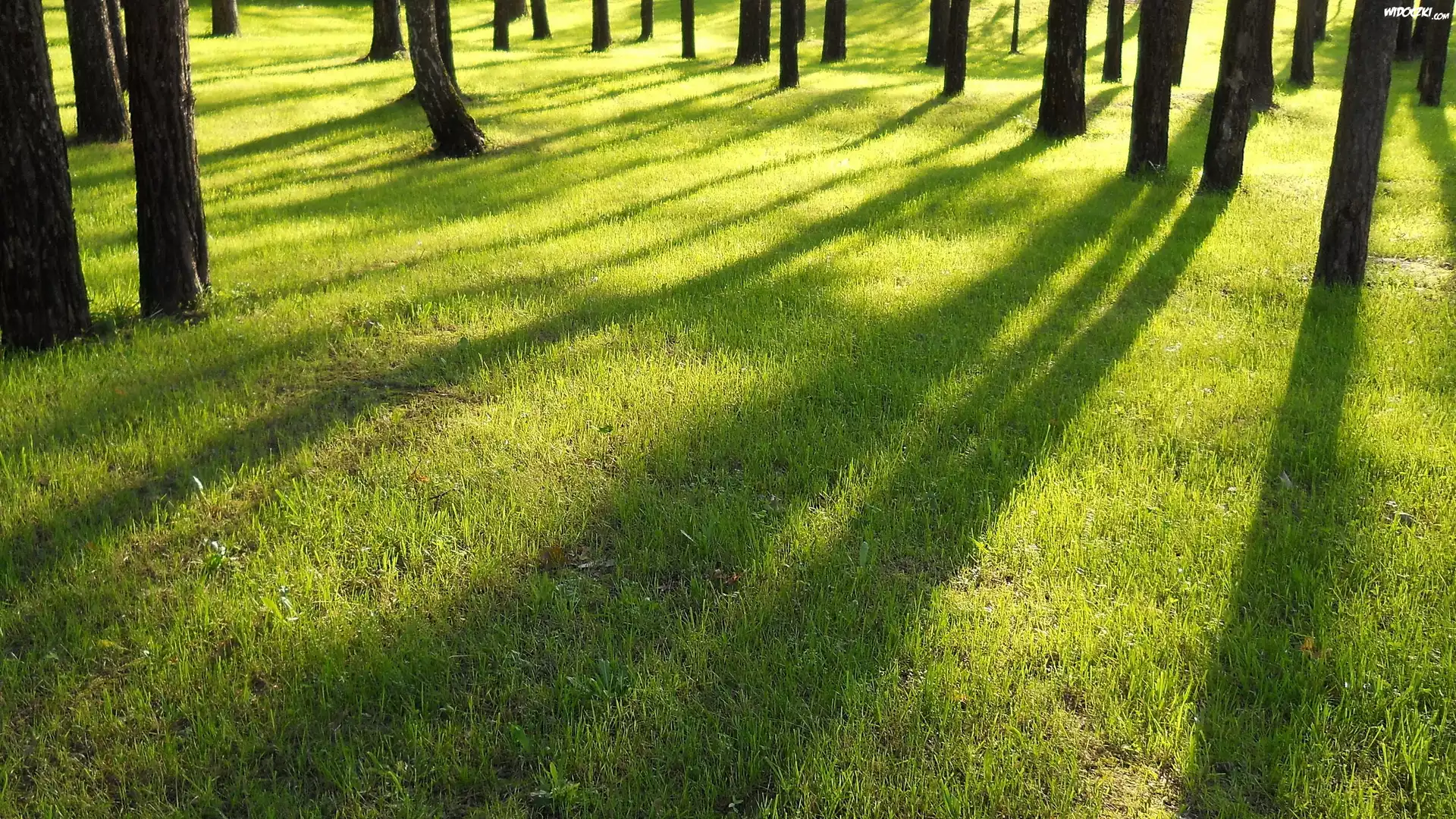 Zdjęcia, Las, Cienie, Drzew, Przebijające, Światło