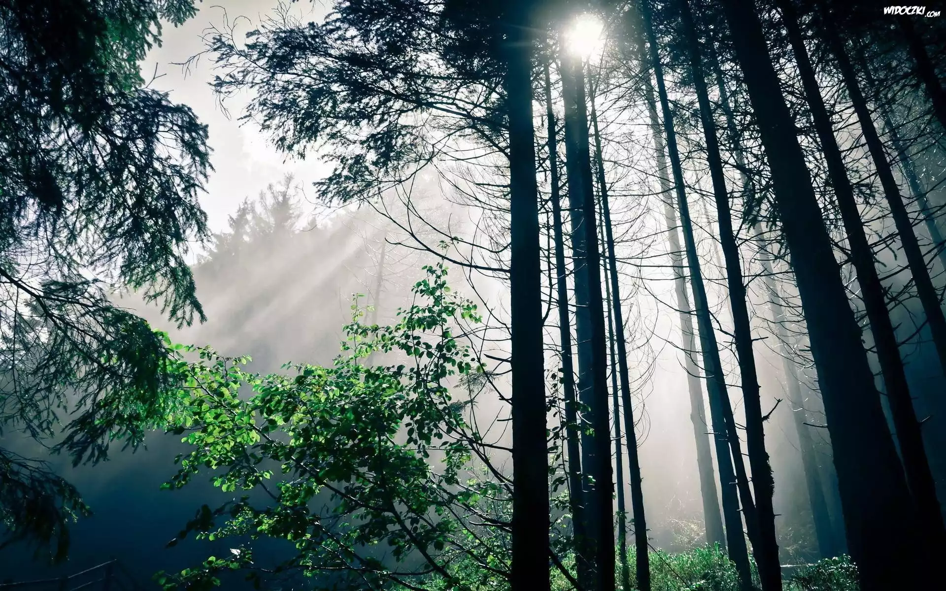 Zdjęcia, Las, Drzewa, Przebijające, Światło