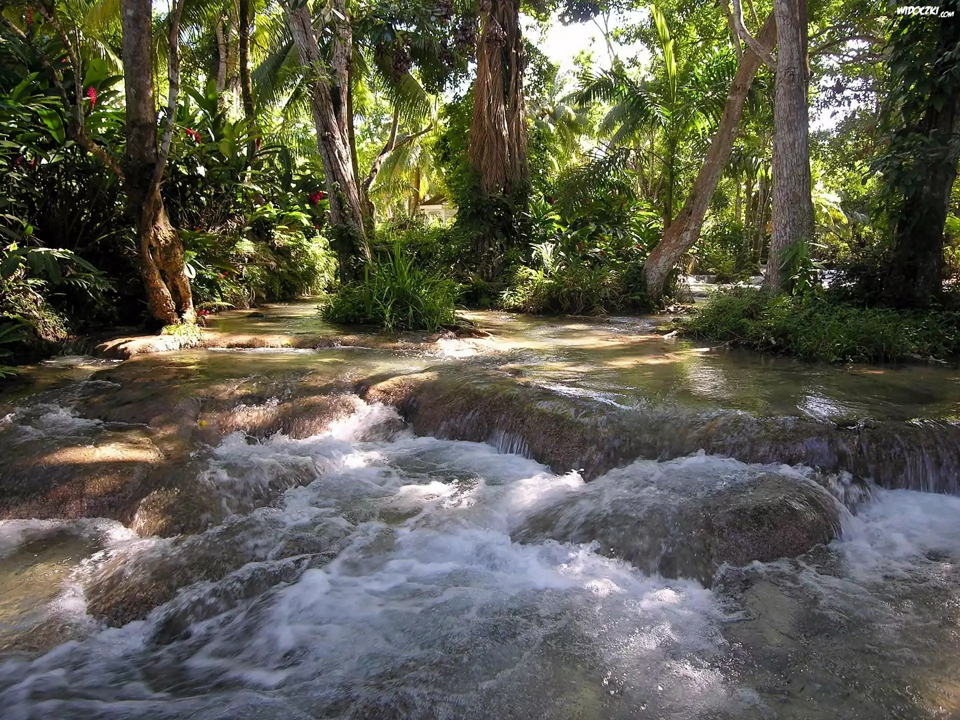 Zdjęcia, Las, Rzeka, Głazy, Przebijające, Światło