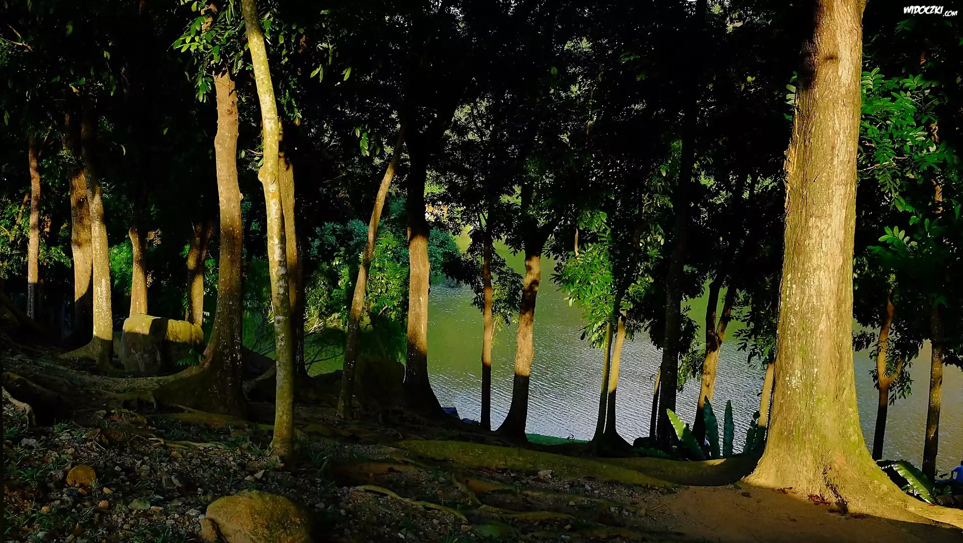 Zdjęcia, Las, Jezioro, Przebijające Światło
