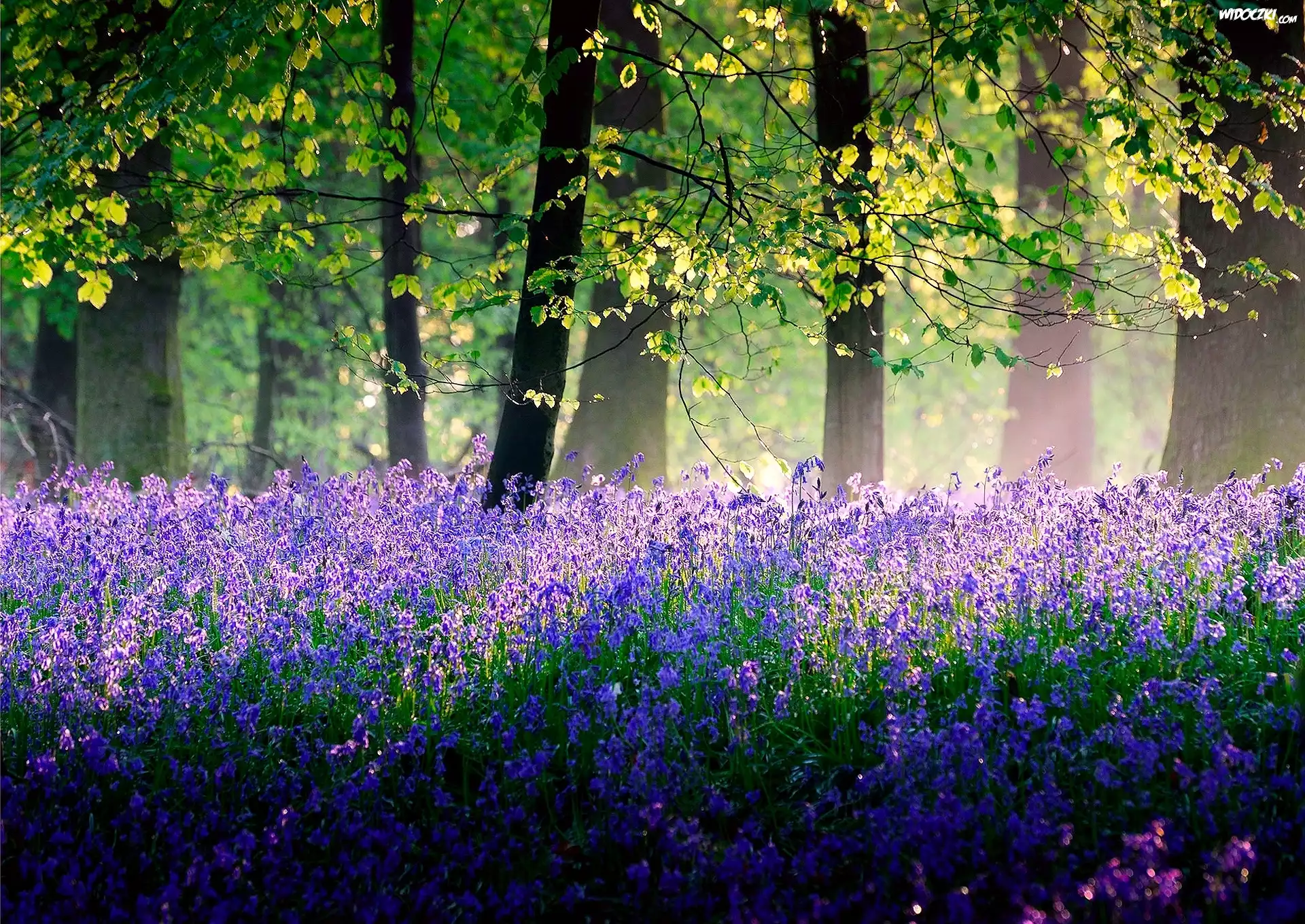 Las, Leśne, Kwiaty, Przebijające, Światło