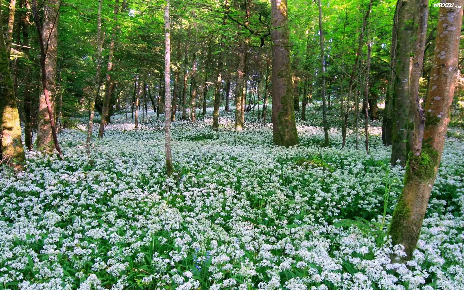 Zdjęcia, Las, Kwiaty, Przebijające, Światło